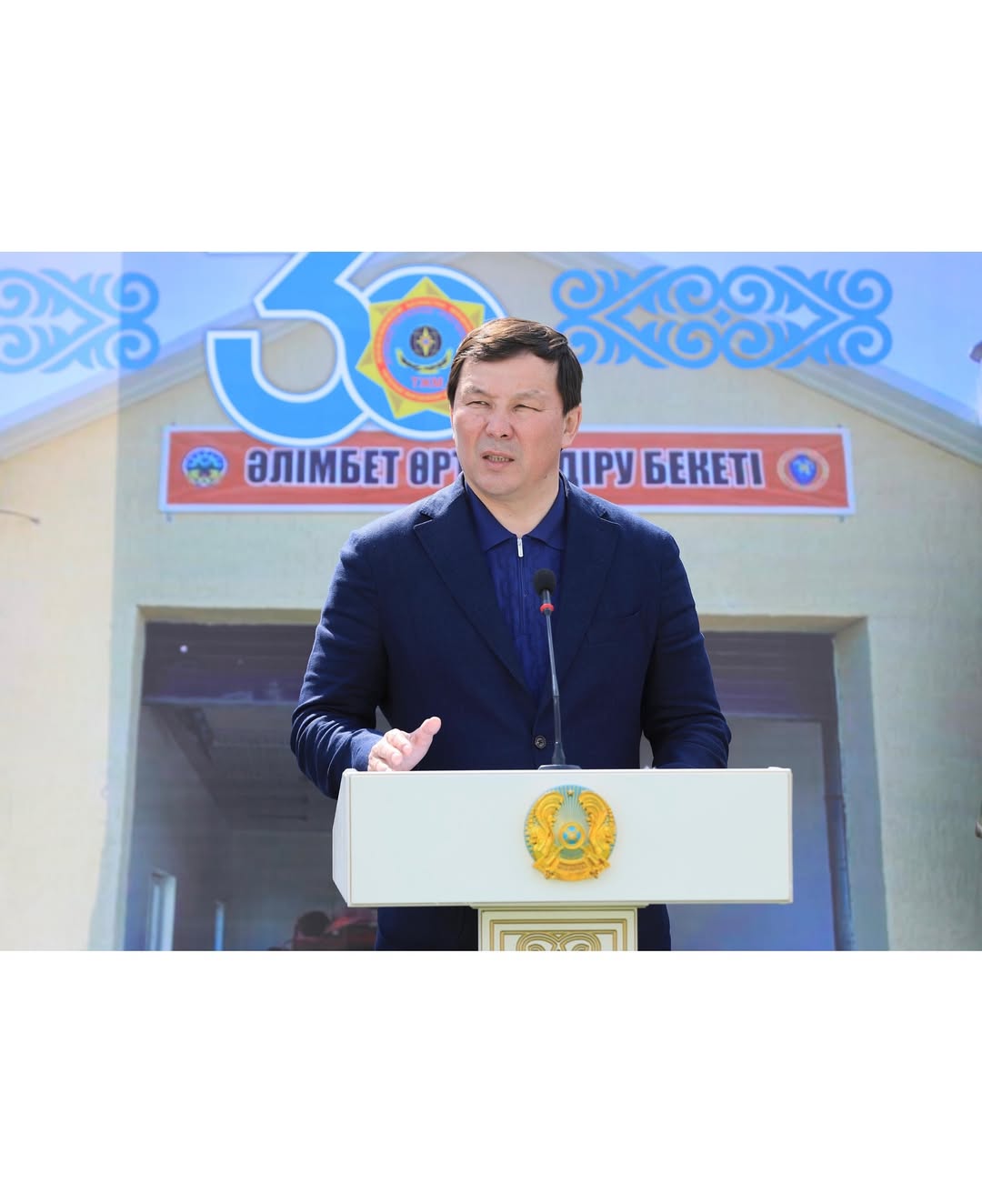 Төтенше жағдайлар министрі Шыңғыс Әрінов Ақтөбеге жұмыс сапары кезінде аймақ басшысы Асхат Шахаровпен бірге Қарғалы ауданына барып, Әлімбет ауылындағы жаңа өрт сөндіру бекетінің салтанатты ашылуына қатысты