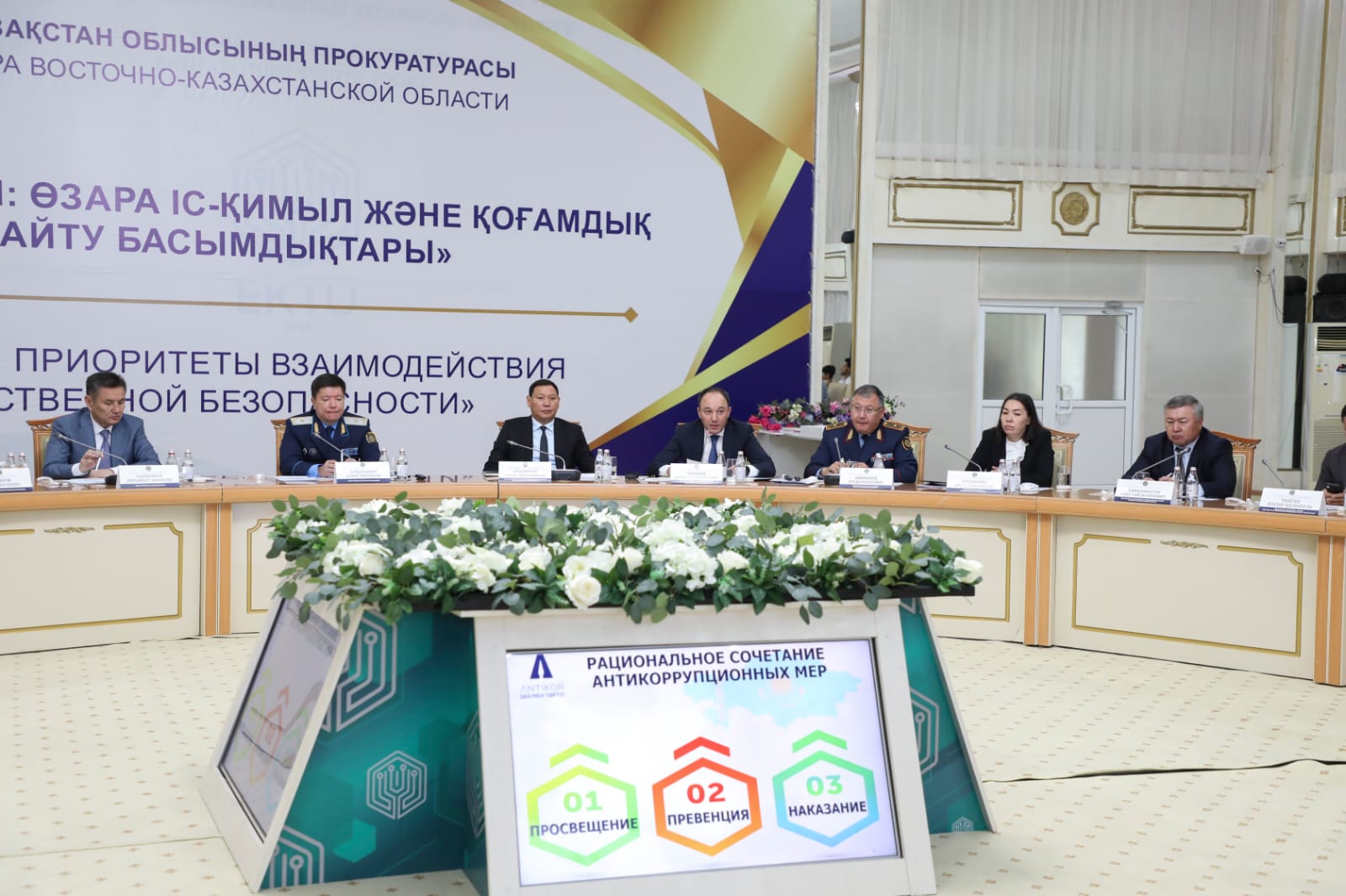 Отырыста сөз сөйлеген Денис Шакенов Сыбайлас жемқорлыққа қарсы қызметтің ШҚО бойынша Департаменті мемлекеттік және жеке құрылымдарда заңдылық пен құқықтық тәртіпті нығайту бойынша мақсатты жұмысты жалғастырып жатқанын атап өтті. Оның айтуынша, бүгінде Қазақстанның сыбайлас жемқорлыққа қарсы саясаты тек сыбайлас жемқорлық көріністерімен күрес жүргізумен шектелмей, қоғамда оған мүлдем төзбеушілікті қалыптастыруға бағытталған.