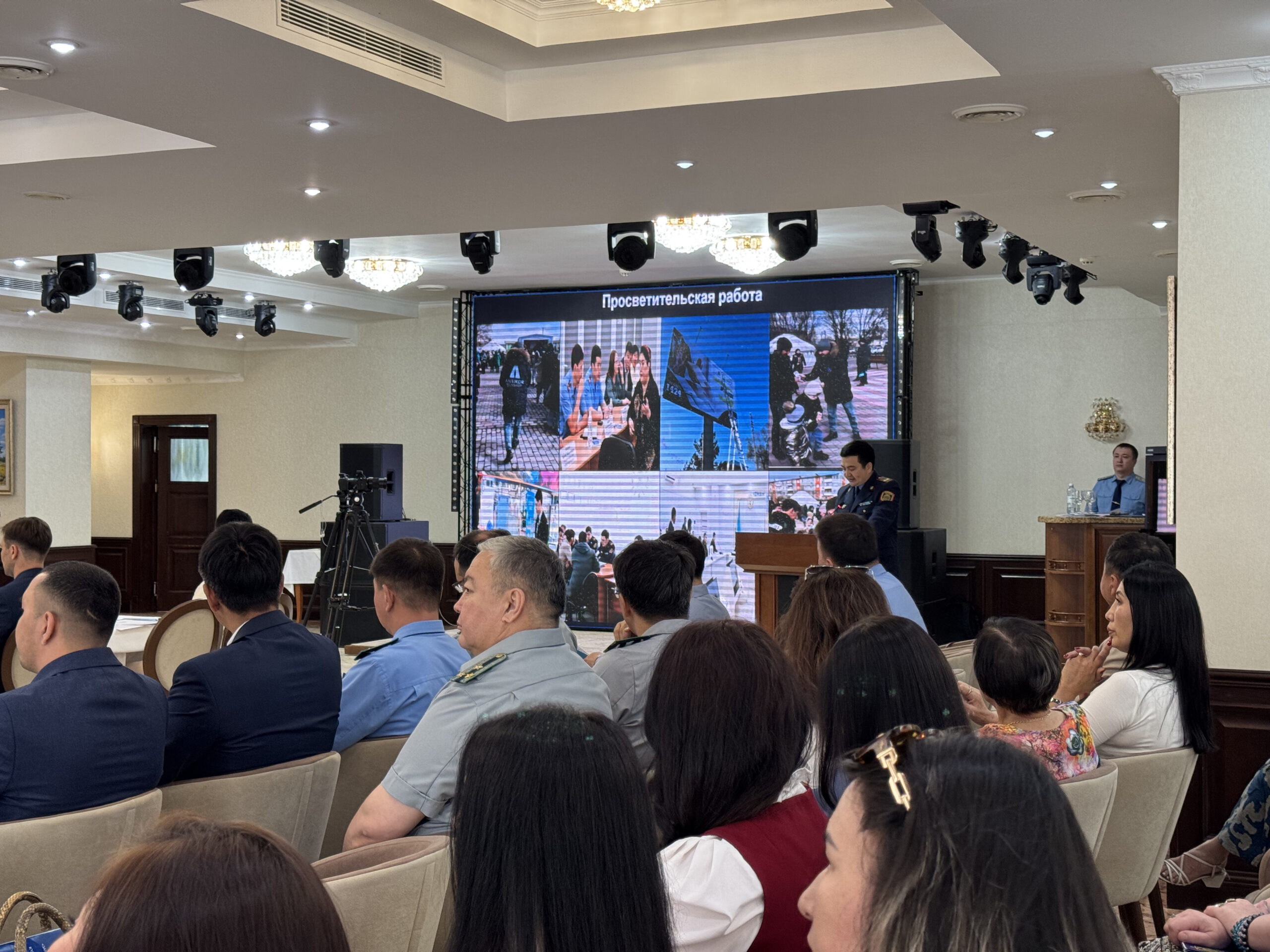 Аталған жиында Департамент басшысының бірінші орынбасары Жаслан Хамитов «Заң мен Тәртіп» қағидатын іске асыру аясында жүзеге асырылып жатқан превентивті шаралар туралы баяндама жасады.
