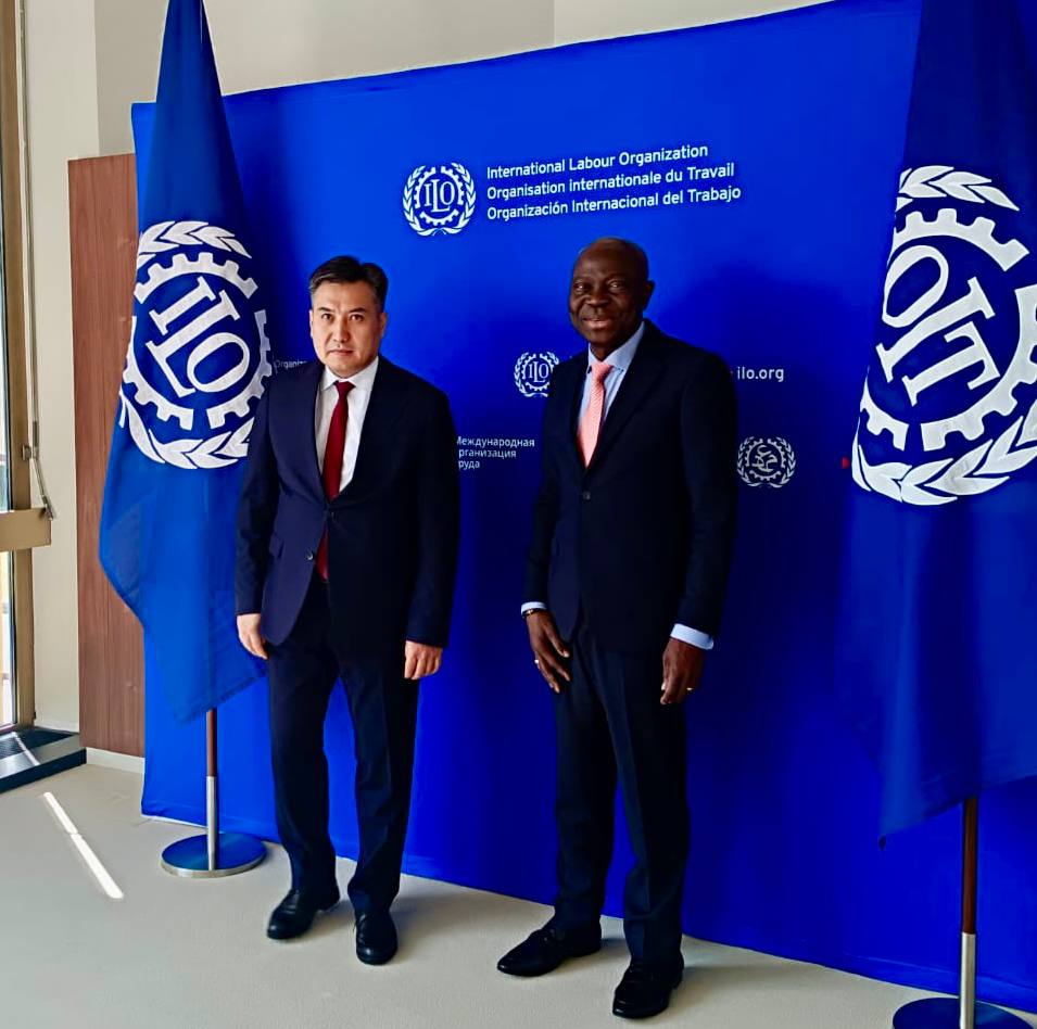 ҚР Еңбек және халықты әлеуметтік қорғау бірінші вице-министрі Асқарбек Ертаев Халықаралық еңбек конференциясының 113 сессиясына қатысу үшін Швейцарияға жұмыс сапары аясында Халықаралық еңбек ұйымының (бұдан әрі – ХЕҰ) Бас директоры Жильбер Унгбомен кездесті. Диалог барысында тараптар еңбек саласындағы заңнамалық бастамаларды дамыту және ХЕҰ конвенцияларын қабылдау мәселелерін талқылады.