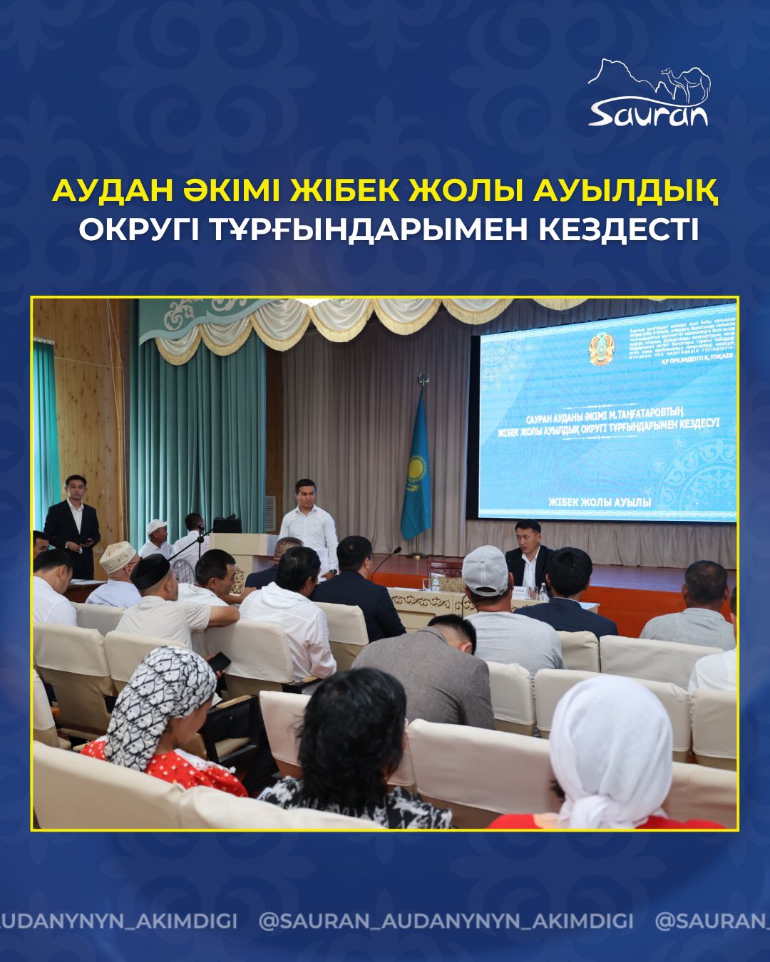 2025 жылдың І жартыжылдығында Сауран ауданының әкімі Мақсат Таңғатаров Жібек жолы ауылдық округінің тұрғындарымен кездесу өткізіп, ауылдың әлеуметтік-экономикалық дамуы, инфрақұрылым жағдайы және алдағы жоспарлар бойынша пікір алмасты. Ашық диалог форматында өткен кездесуде тұрғындар өзекті мәселелерін ортаға салып, ауыл тіршілігін жақсартуға қатысты ұсыныстарын жеткізді.