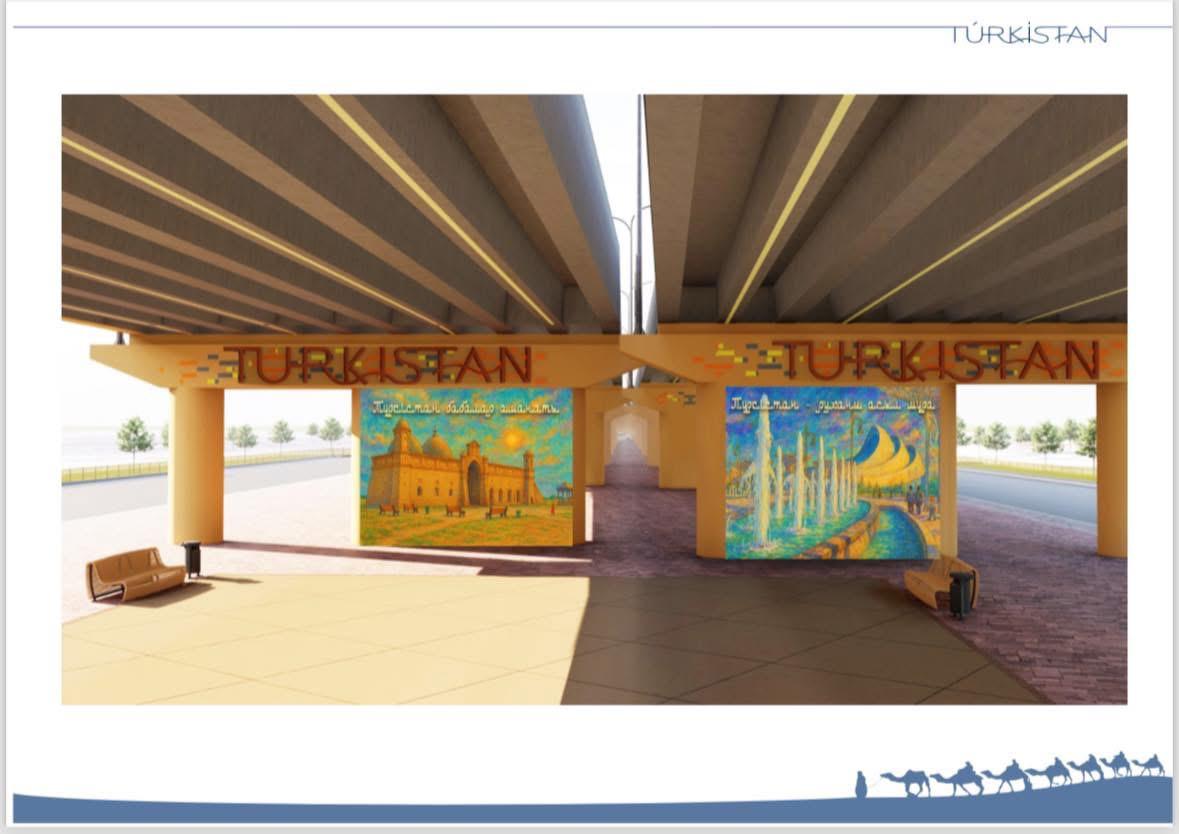 Түркістан қаласында «Батыс Қытай – Батыс Еуропа» халықаралық көлік дәлізі бойында орналасқан көпірде сурет салуға арналған арнайы алаңдар бар.