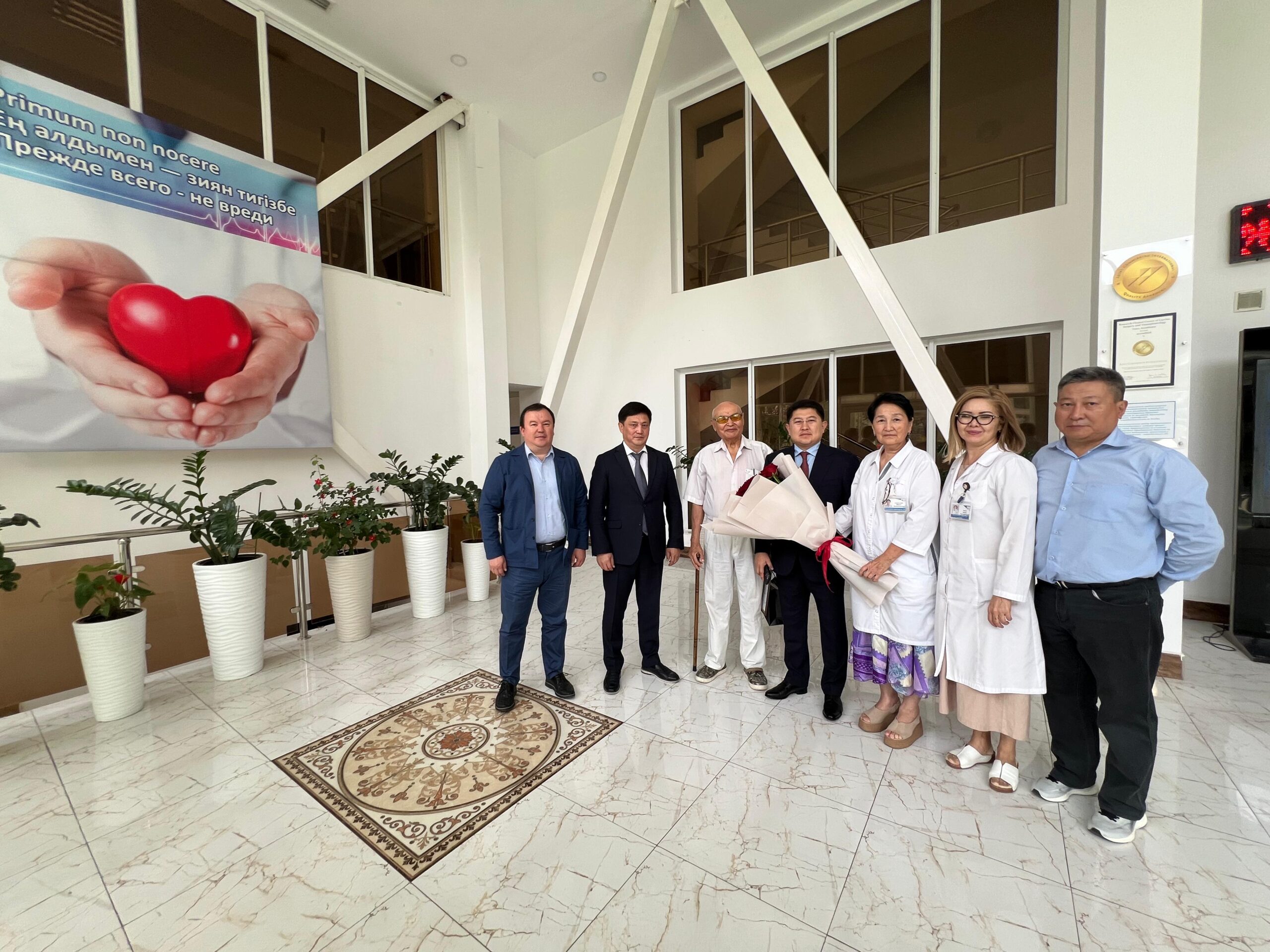 Жамбыл облысы әкімдігі денсаулық сақтау басқармасының басшысы Сержан Назарбек елімізге еңбегі сіңген көрнекті кардиохирург, медицина ғылымдарының докторы, профессор Сейтхан Жошыбаевты 86 жасқа толған мерейтойымен құттықтау үшін Ғылыми клиникалық кардиохирургия және трансплантология орталығына арнайы барды.
