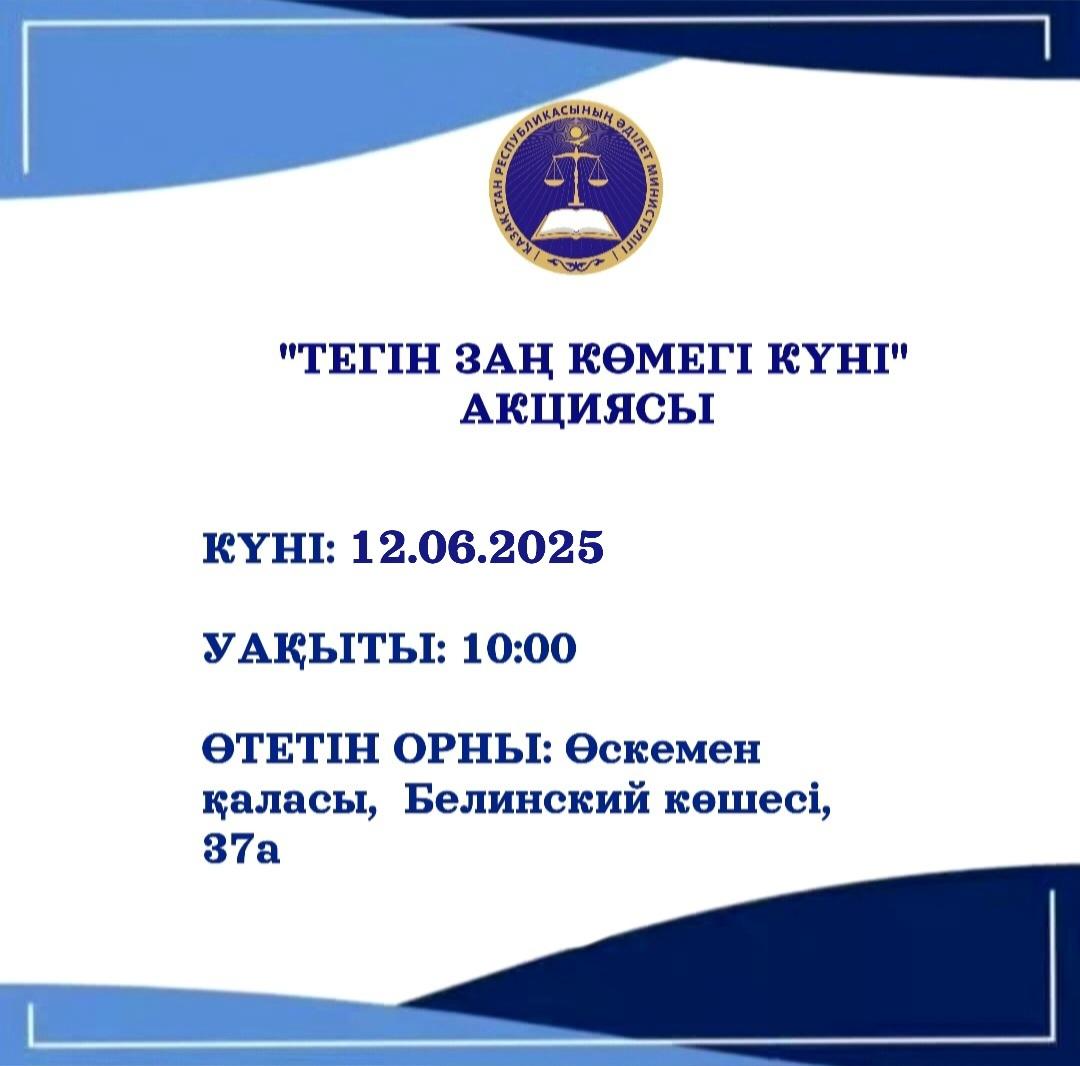 «Тегін заң көмегі күні» акциясы өткізілетіні туралы хабарлайды.