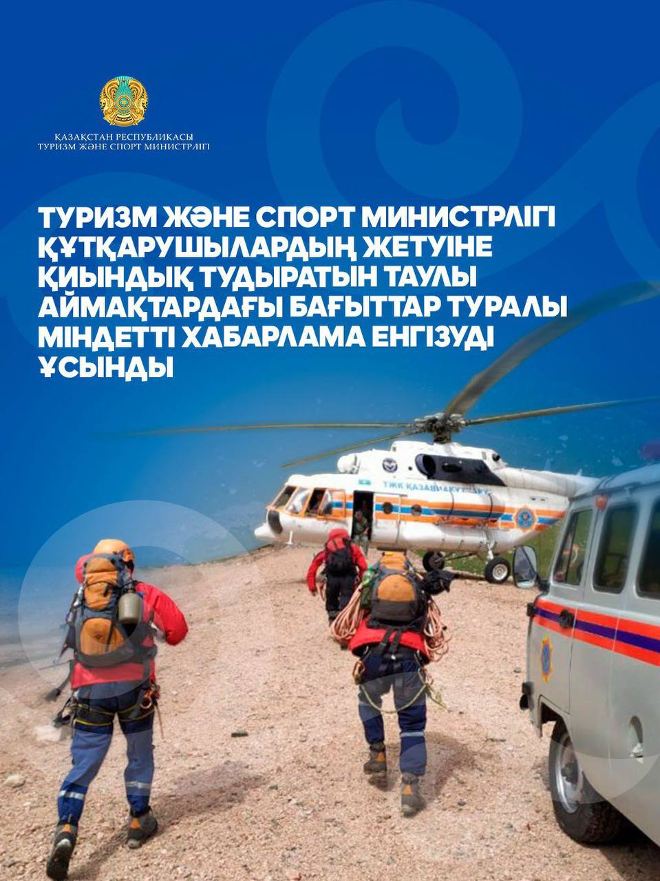 ҚР Туризм және спорт министрлігі туристердің таулы аймақтардағы қауіпсіздігін қамтамасыз ету мақсатында заңнамаға түзету енгізуді ұсынып отыр. Жаңа норма бойынша туристер жету қиын таулы аймақтарға сапар алдында Төтенше жағдайлар министрлігінің бөлімшелеріне өз маршруттары туралы міндетті түрде алдын ала хабар беруге тиіс.