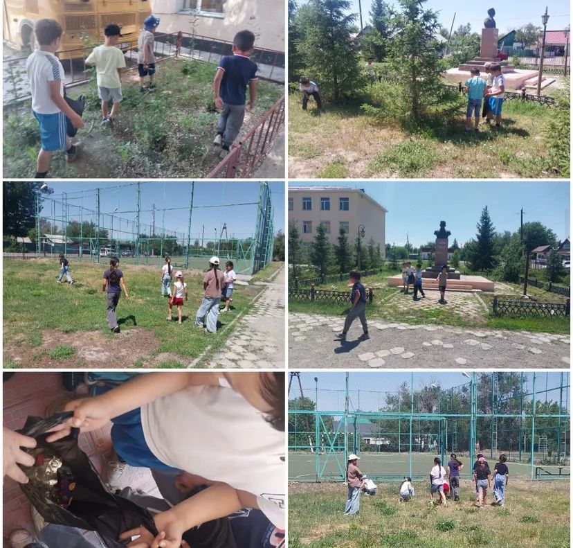 Балалар «Жасыл Ел» бастамасын қолдап, аумақты тазалап, табиғатқа деген жанашырлықтарын ісімен дәлелдеді. 🌱🧤