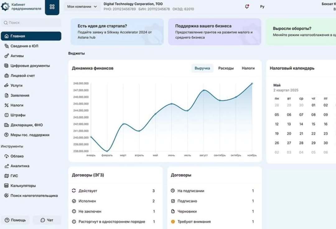 💬 КБЖК кәсіпкерді тіркеуден бастап салық жеңілдіктерін алу мен сатып алуға қатысуға дейінгі іскерлік процестің барлық циклін қамтиды. Кабинеттің көмегімен салық есептілігін беруге, артық төлемді қайтаруға, төлемдерді нақтылауға, салық режімін өзгертуге және бюджетпен есеп айырысуларды бақылауға болады. Яғни, іскер азаматтар мемлекеттік органдарға бармай-ақ барлығын электронды форматта жүзеге асыра алады.
