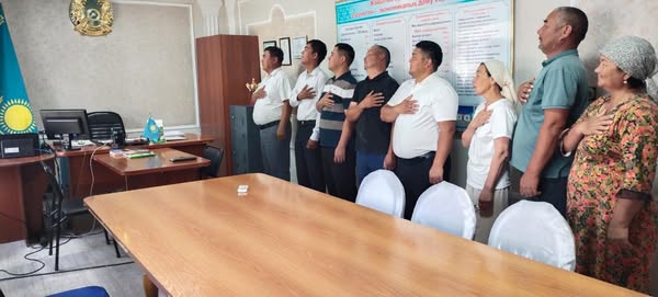Жайылма ауылдық округі әкімі аппаратының қызметкерлері жұмыс күнін Қазақстан Республикасының Мемлекеттік Гимнінен бастады.