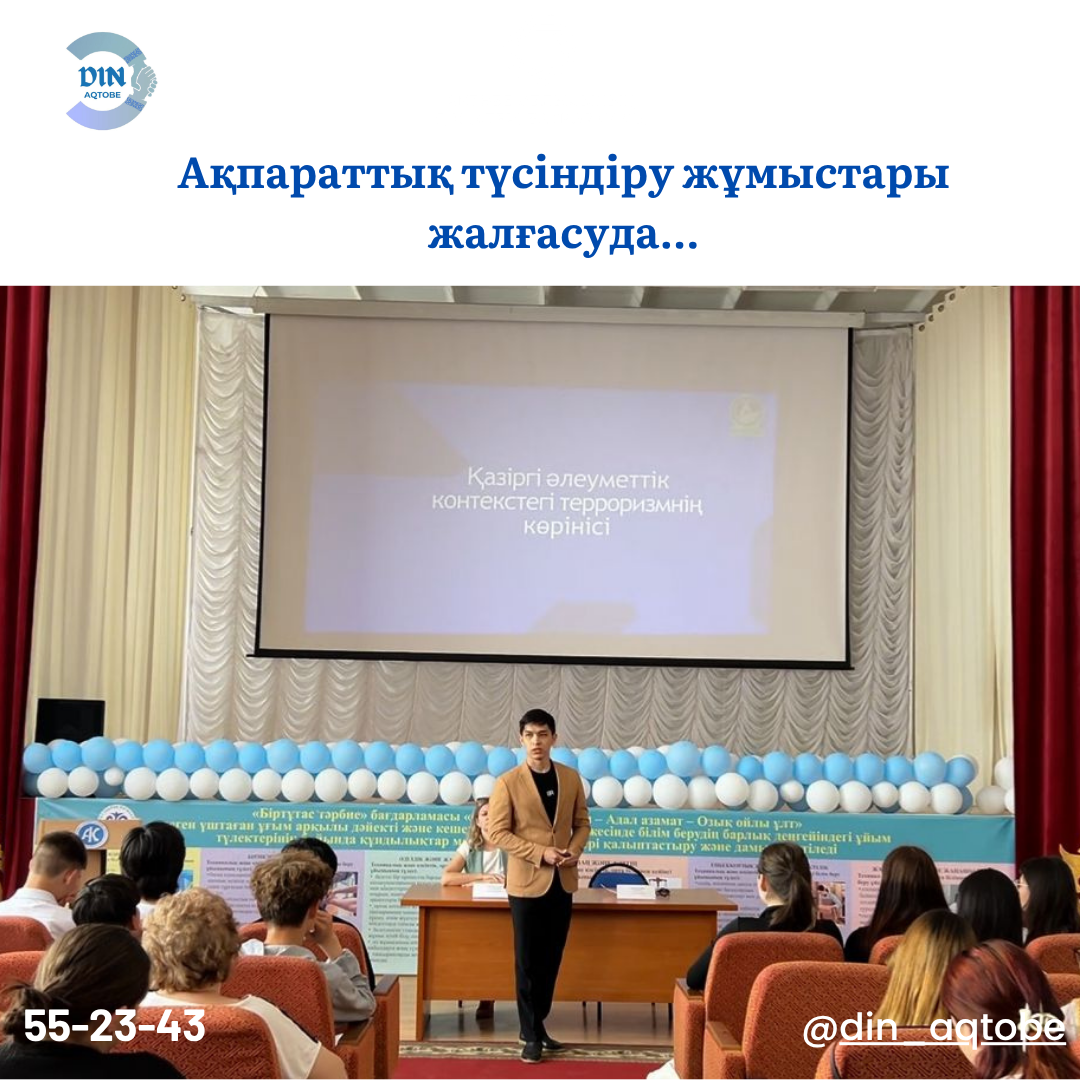 А. ж. 9-10 маусым күндері ақпараттық-түсіндіру тобының мүшелері М.Ғабдуллин атындағы Азаматтық қорғау академиясы және Ақтөбе сервис колледжі студенттеріне ақпараттық түсіндіру жұмыстарын жүргізді.