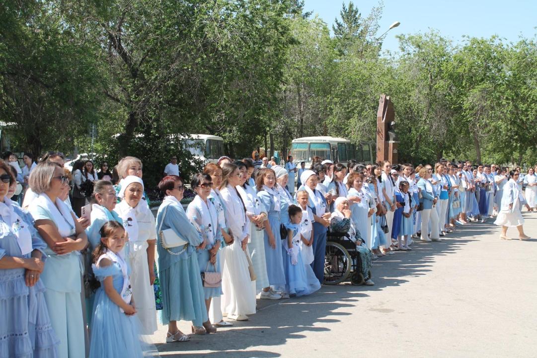 Форумға дейін шара қатысушылары Әлия Молдағұлованың ескерткішіне гүл шоқтарын қойып, ерлікке тағзым етті.