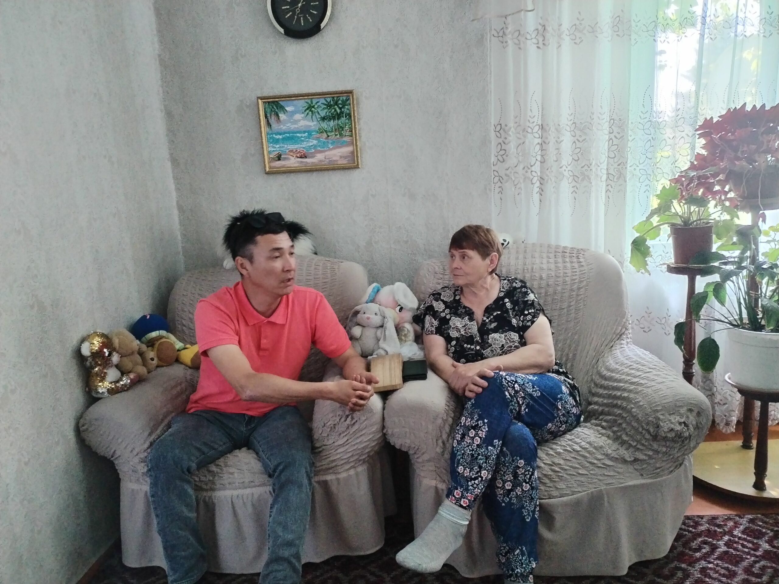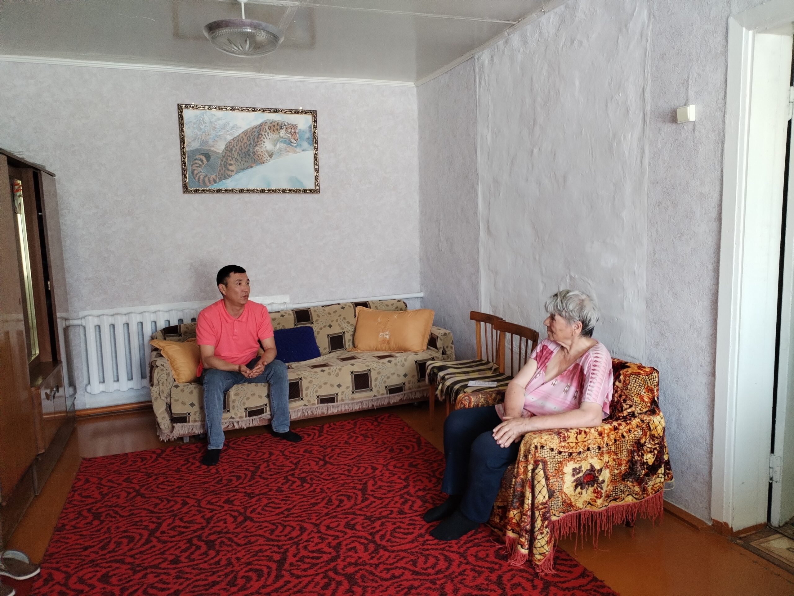 2025 жылғы 10 маусымда әлеуметтік көмек бөлімшесінің меңгерушісі С.К. Төлегенов және арнаулы әлеуметтік қызметтерге қажеттілікті бағалау және анықтау жөніндегі әлеуметтік қызметкер Д. Э. Майсатаева Мирный а / о қызмет алушыларына арнайы әлеуметтік қызметтердің сапасы мен көлемін бақылау мақсатында барды.