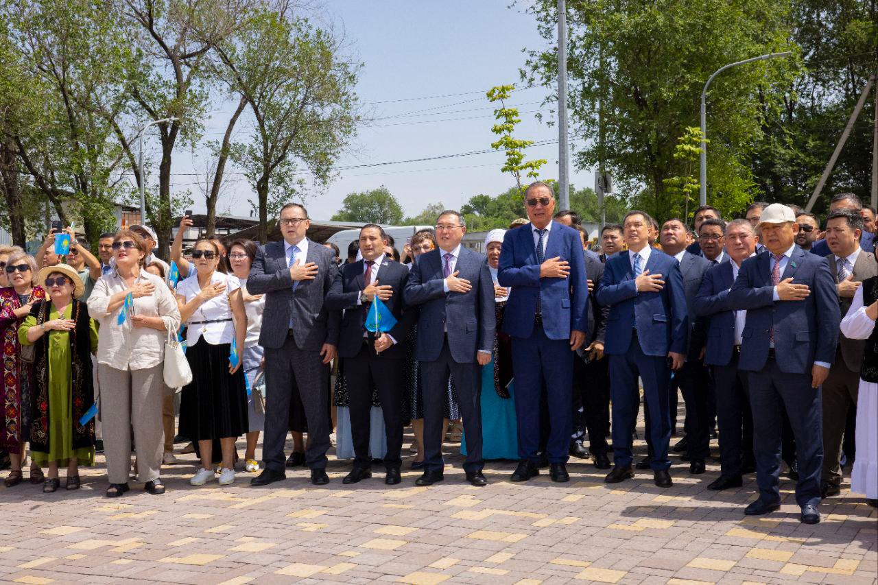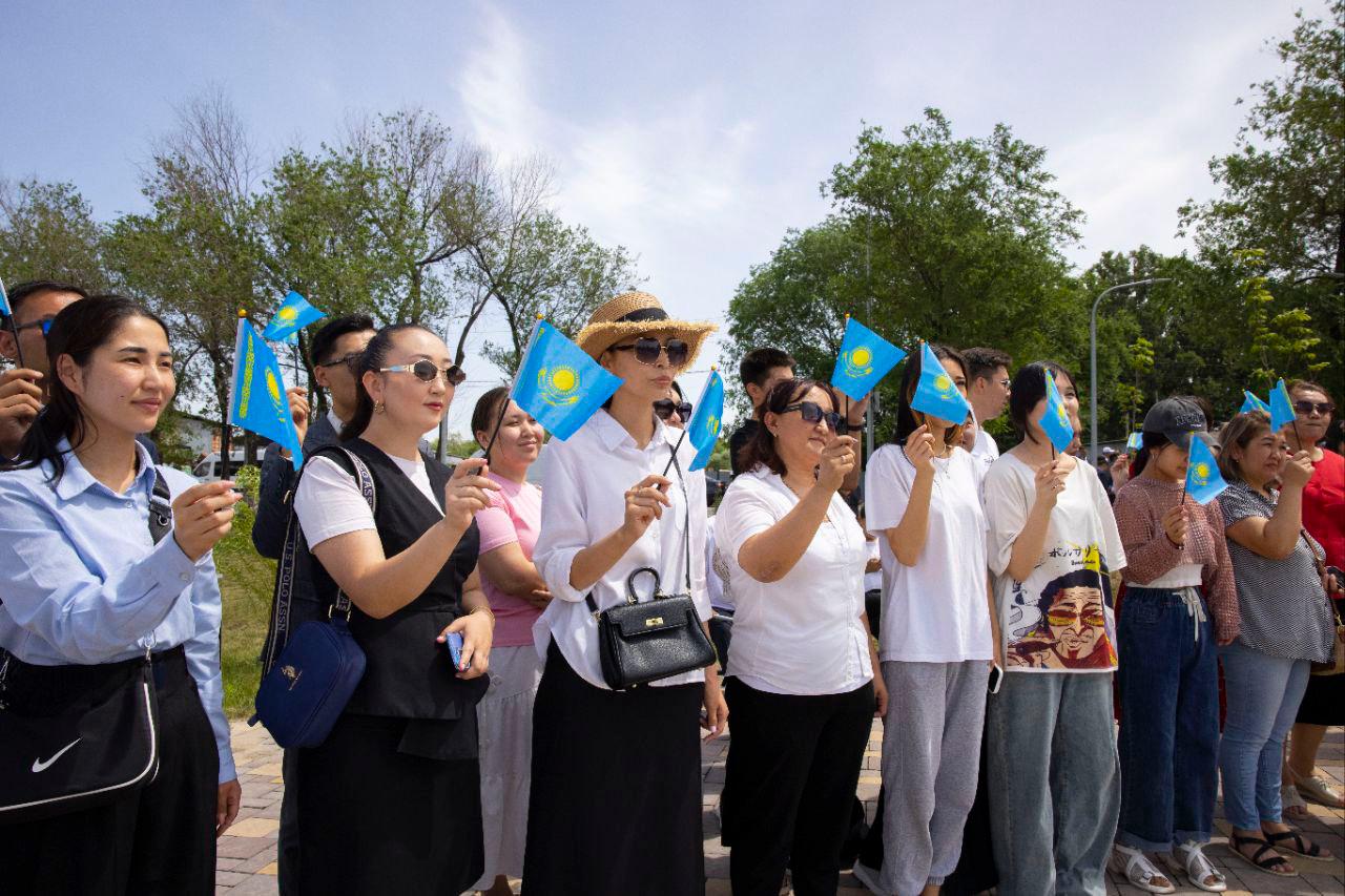 Алматы облысының әкімі Марат Сұлтанғазиев жиналған жұртшылықты құттықтап, Мемлекеттік рәміздердің ел болашағын тәрбиелеудегі маңызын атап өтті: