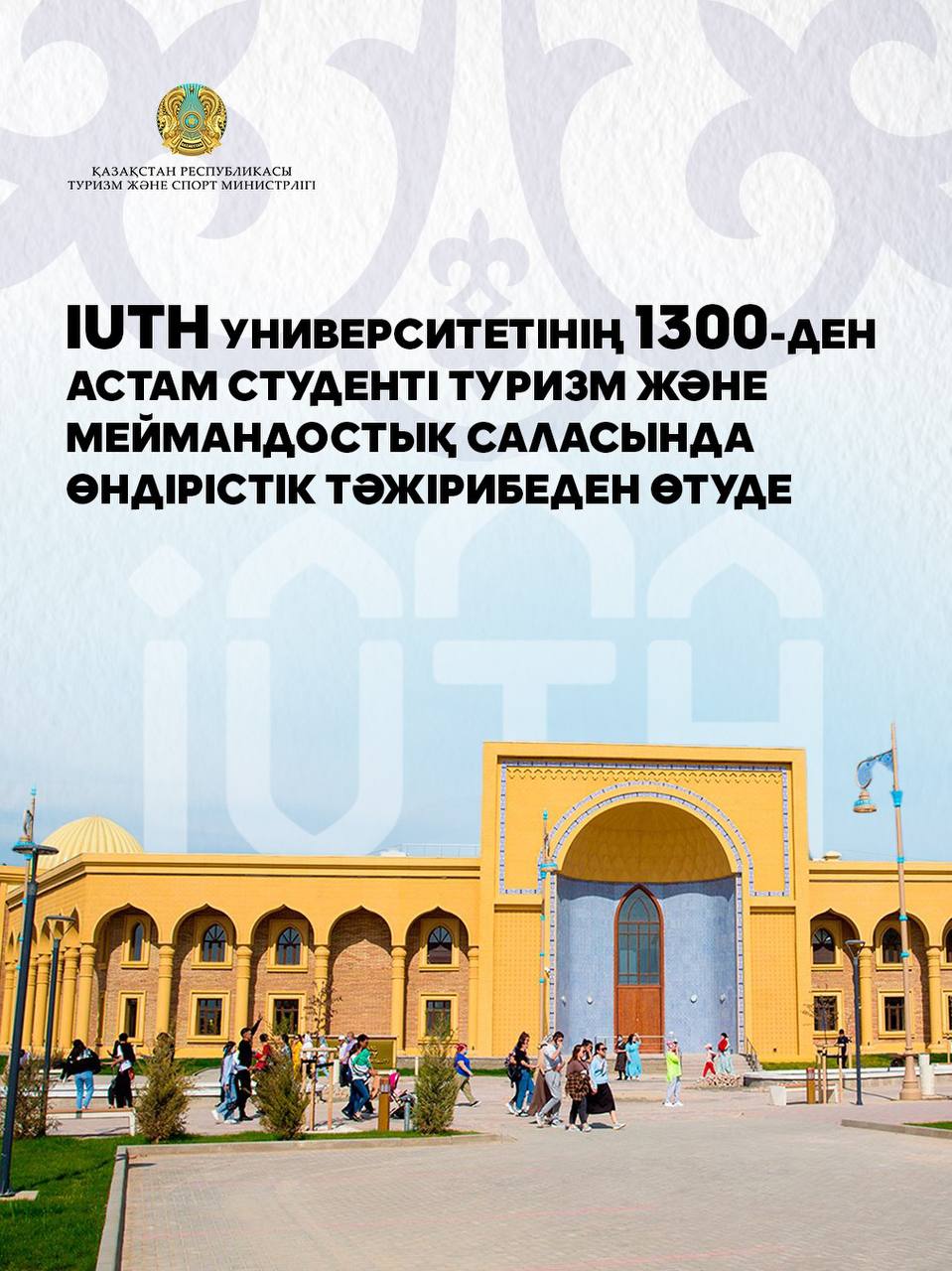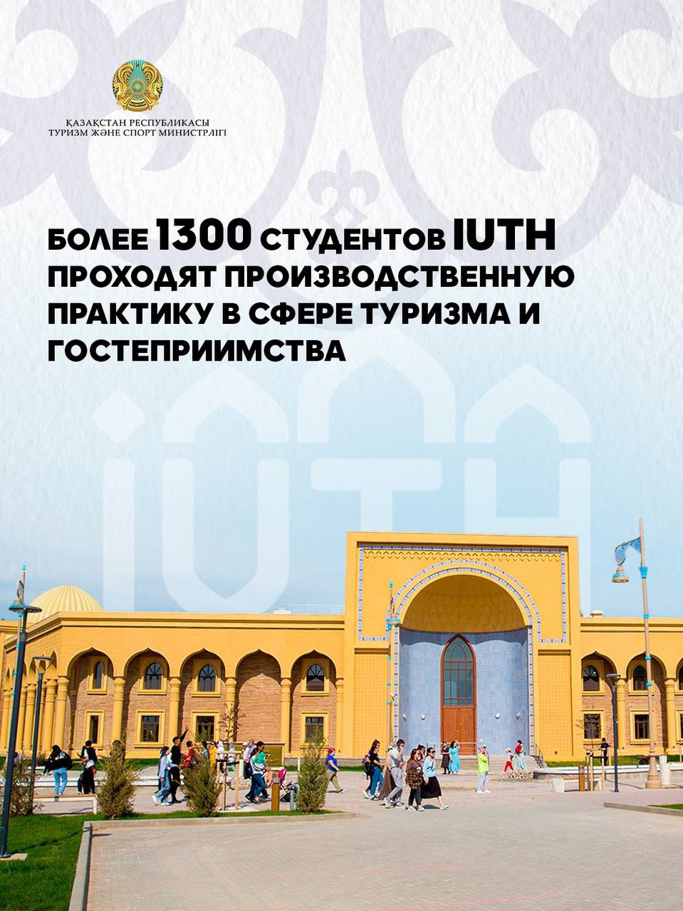 2025 жылдың жаз айларында Түркістан қаласындағы Халықаралық туризм және меймандостық университетінің (IUTH) 1300-ден астам студенті туризм саласындағы жетекші нысандарда өндірістік тәжірибеден өтуде.