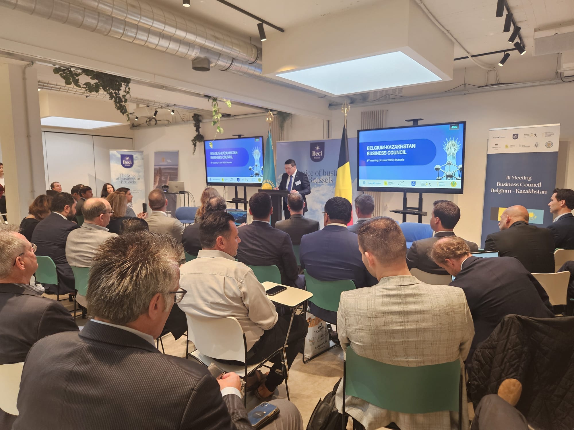 Брюссель, 2025 жылғы 4 маусым – Бельгия астанасында Қазақстан-Бельгия Іскерлік кеңесінің үшінші отырысы өтті. Іс-шараға Қазақстан мен Бельгияның жетекші компанияларынан 50-ден астам өкілі қатысты. Шараны БеНиЛюкс Сауда палатасы мен Қазақстанның Сыртқы сауда палатасы, сондай-ақ Қазақстан Республикасының Бельгия Корольдігіндегі Елшілігінің, BECI, AWEX, FIT және Hub.Brussels сауда ұйымдарының қолдауымен ұйымдастырды.