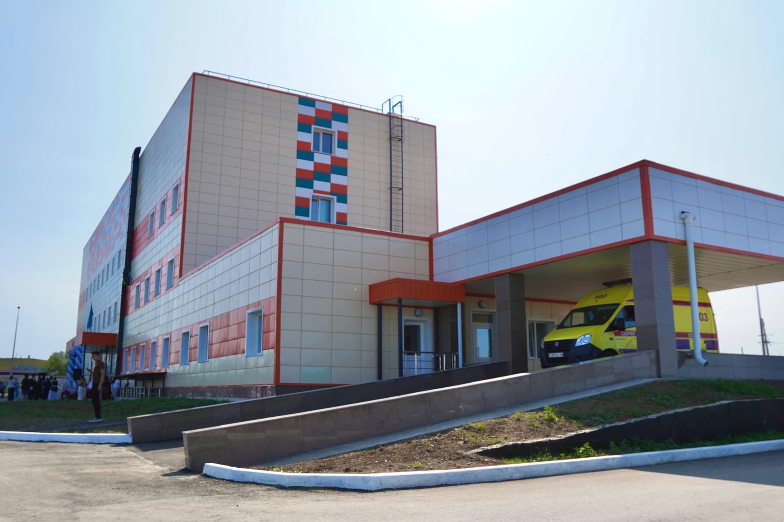 Жаңа емхананың ғимараты заманауи стандарттар мен технологияларға сай жобаланған, пациенттер үшін жайлы жағдай мен медицина қызметкерлерінің тиімді жұмыс істеуіне мүмкіндік жасалған.