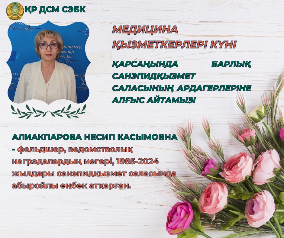 Алиакпарова Несип Касымовна, 1963 жылы 30 желтоқсанда Қарағанды облысы, Қарсақпай кентінде дүниеге келген. 1985 жылы Қарағанды медициналық училищесін «санитариялық фельдшер» мамандығы бойынша тәмамдаған. Тамақтану гигиенасы бөлімінде санитариялық дәрігердің көмекшісі және зертханашы болып жұмыс істеді.