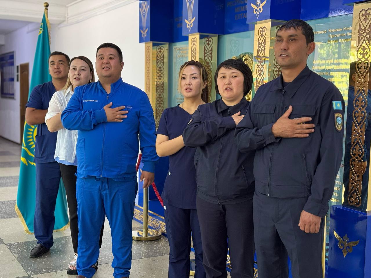 Бүгін — Қазақстан Республикасының Мемлекеттік рәміздері күні. Осыған орай Жамбыл облыстық Апаттар медицина орталығының қызметкерлері Қазақстан Республикасының Әнұранын орындады.