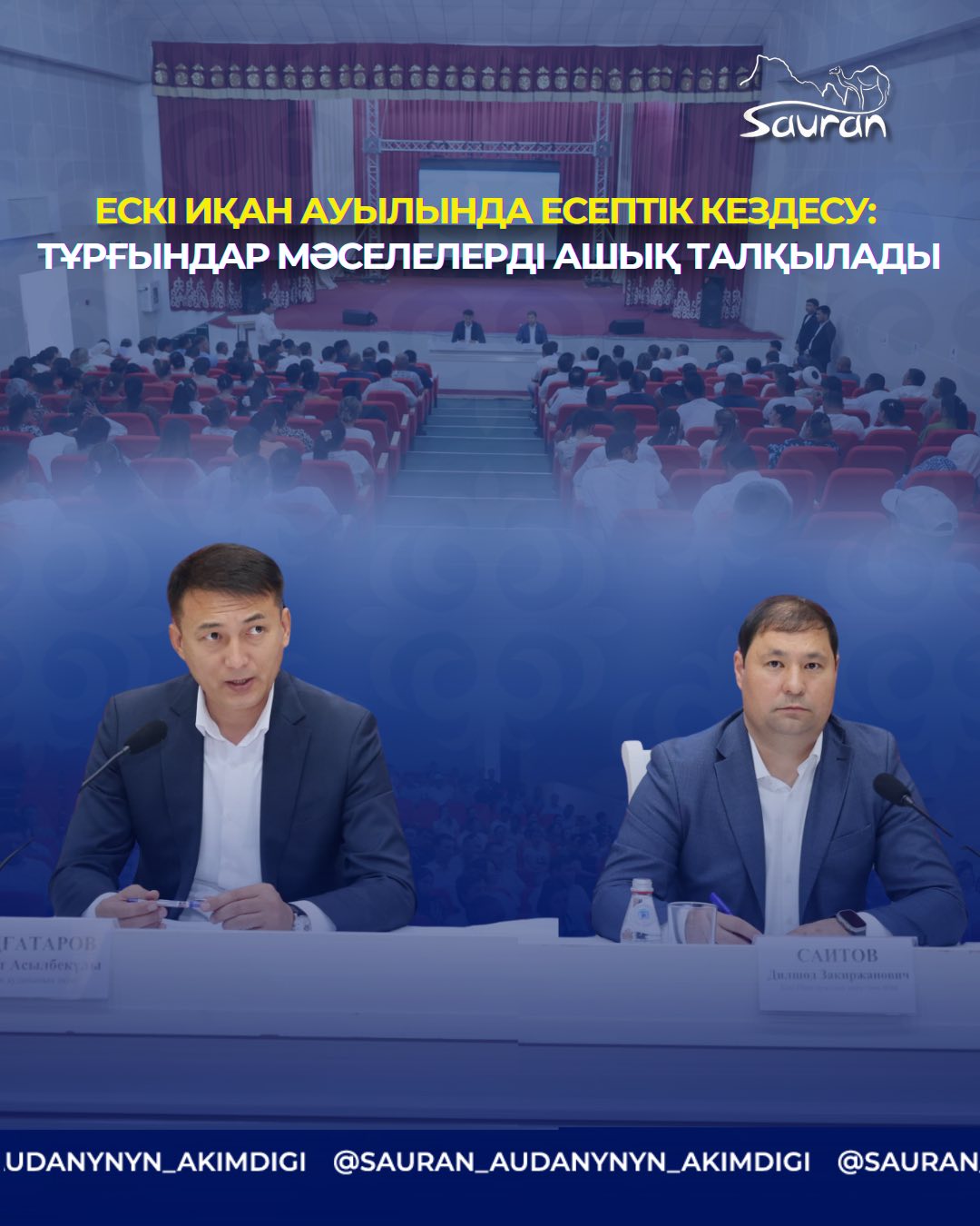 2025 жылдың І жартыжылдығына арналған есеп беру кездесуі аясында Сауран ауданының әкімі Мақсат Таңғатаров Ескі Иқан ауылдық округінің тұрғындарымен жүздесті.
