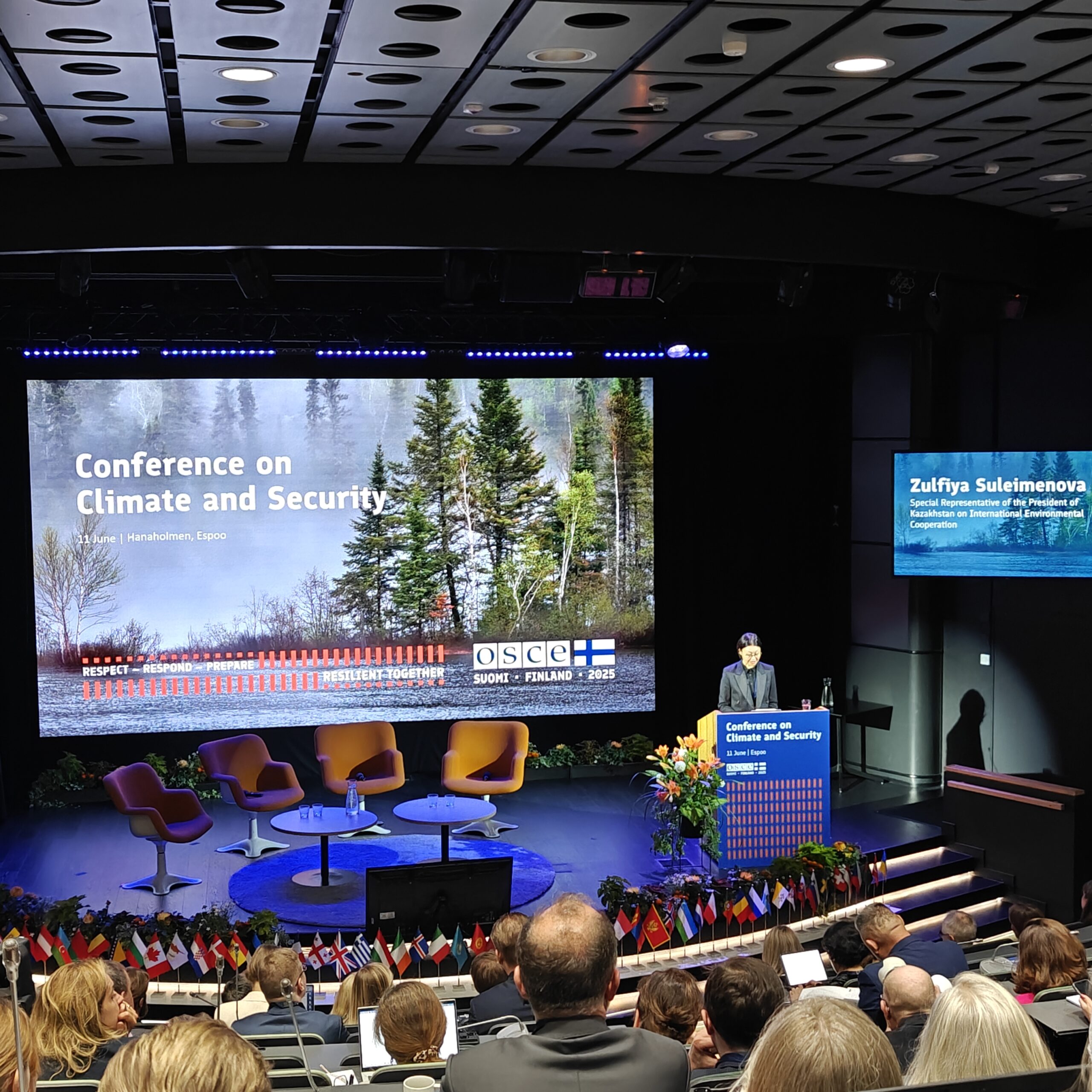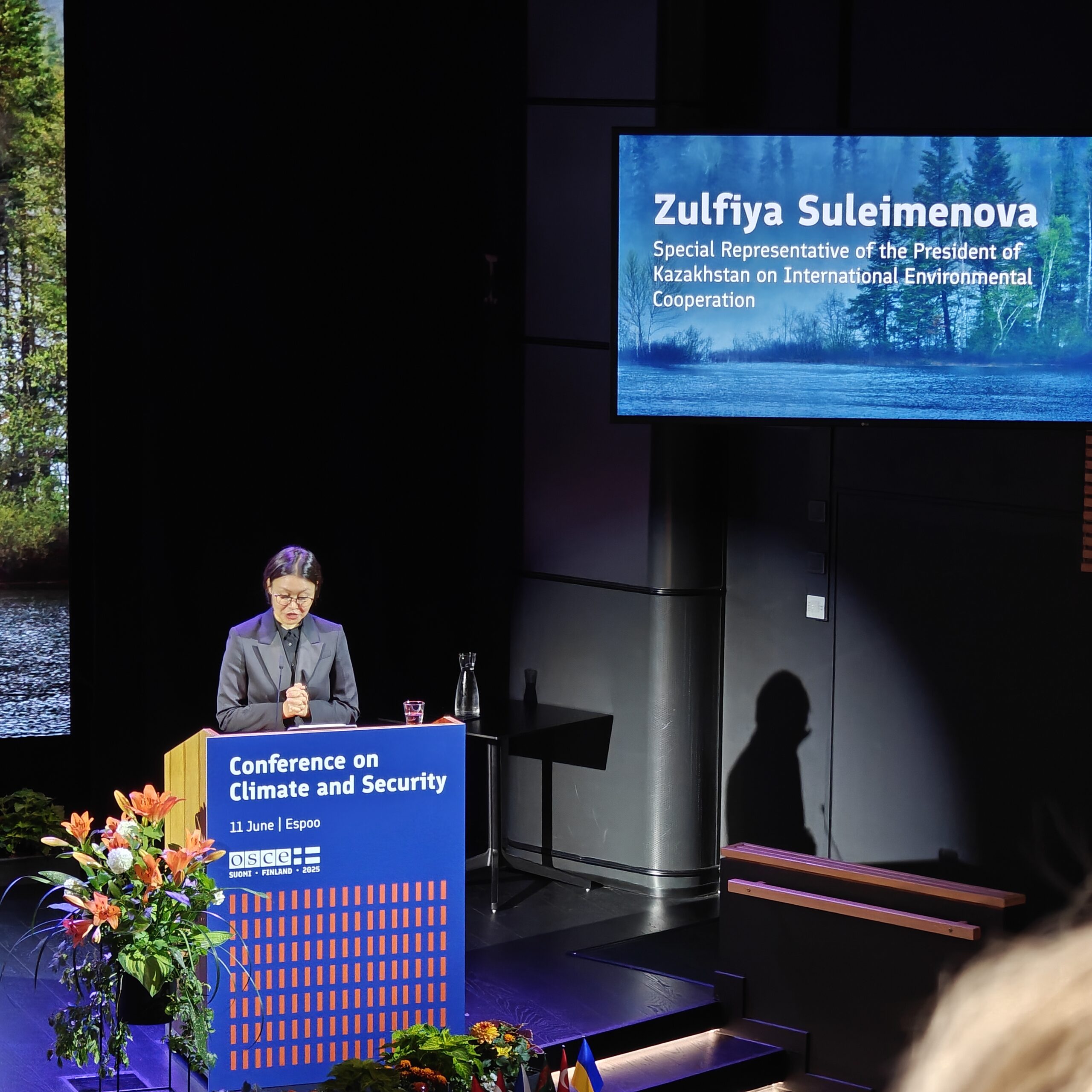 Эспоо, 2025 жылғы 11 маусым – Қазақстан Президентінің кеңесшісі – Халықаралық экологиялық ынтымақтастық жөніндегі арнаулы өкілі Зүлфия Сүлейменова Еуропадағы қауіпсіздік және ынтымақтастық ұйымындағы Финляндияның Іс басындағы төрағалығы ұйымдастырған Климат және қауіпсіздік жөніндегі конференциясына қатысты.