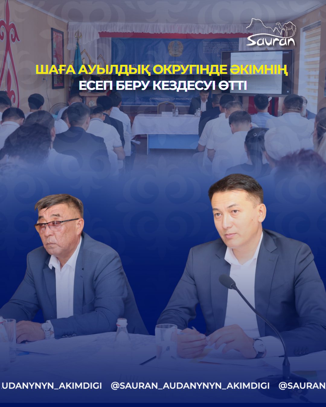 2025 жылдың І жартыжылдығына арналған есеп беру кездесуі аясында Сауран ауданының әкімі Мақсат Таңғатаров Шаға ауылдық округінің тұрғындарымен кездесті. Жиында ауылдық округ әкімі Ырысқали Жұманов баяндама жасап, соңғы жартыжылдықта атқарылған жұмыстар мен алдағы жоспарлар туралы есеп берді. Ол өз баяндамасында ауылдың әлеуметтік-экономикалық даму бағытындағы көрсеткіштерді атап өтіп, инфрақұрылымды жақсарту бойынша жүзеге асқан жобаларға тоқталды.