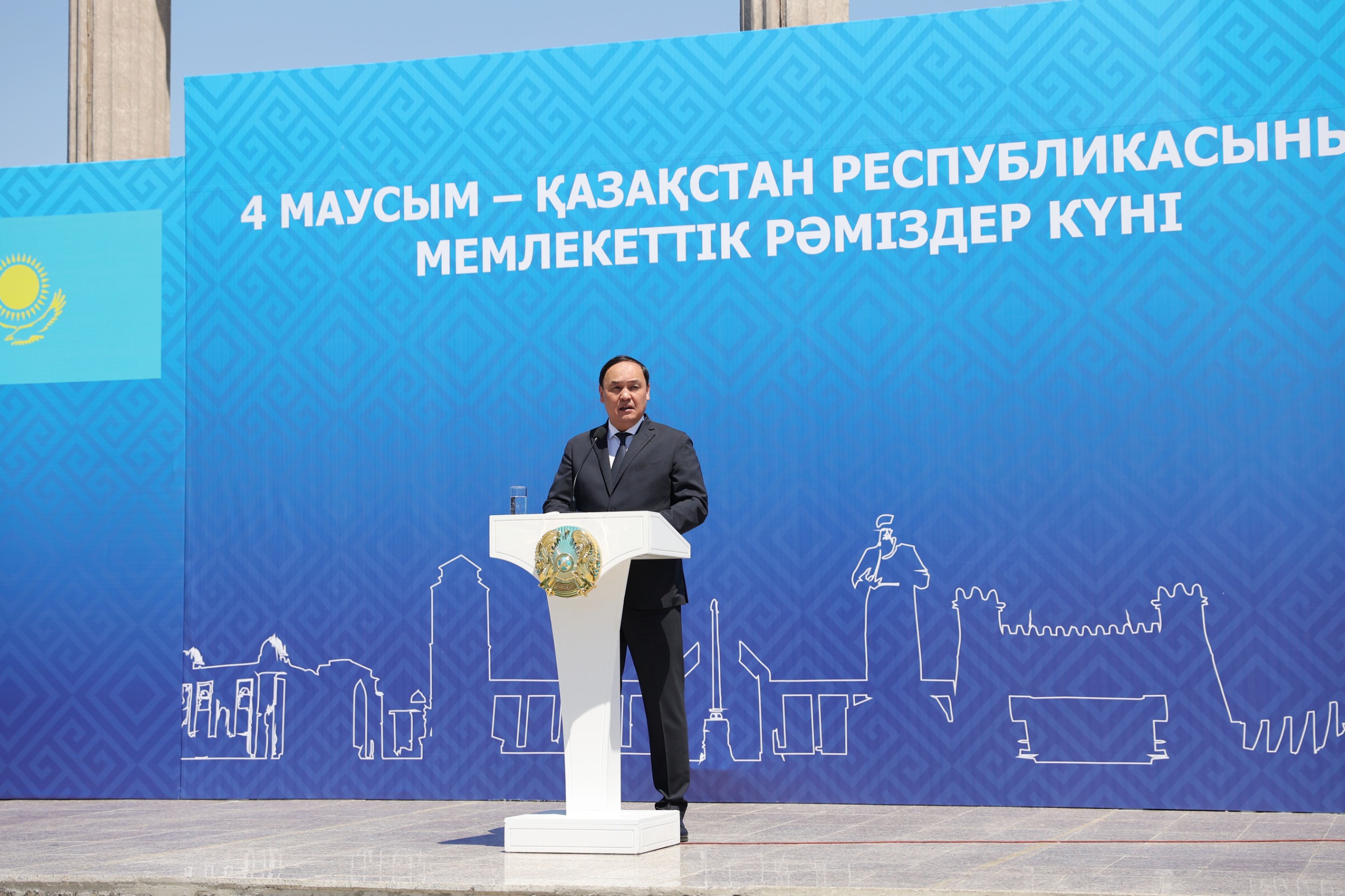 – Мемлекеттік Ту, Елтаңба және Әнұран — егемендігіміздің нышаны, ұлт рухының көрінісі. Егемен еліміздің көк байрағы желбіреп, Елтаңбамыз төрден орын алып, Әнұранымыз шырқалған сәтте толқымайтын жан, тебіренбейтін жүрек жоқ шығар.Қасиетті рәміздерімізде бабаларымыздың ғасырлар бойғы арман-тілегі мен мақсат-мұраты тоғысқан. Бүгінде елімізде түрлі этнос өкілдері ортақ шаңырақтың астында бірлік пен бейбіт өмір сүріп келеді.Бүгінгі шара – осы тұтастықты, тұрақтылық пен бірлікті одан әрі нығайтуға зор үлес қосатынына сенімім мол, – деді облыс әкімі.