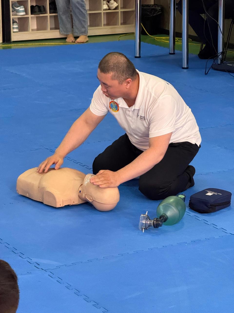 Қатысушылар жарақат, сүйек сынуы, қан кету кезінде алғашқы көмек көрсету ережелерін меңгеріп, жүрек-өкпе реанимациясы бойынша практикалық жаттығудан өтеді.