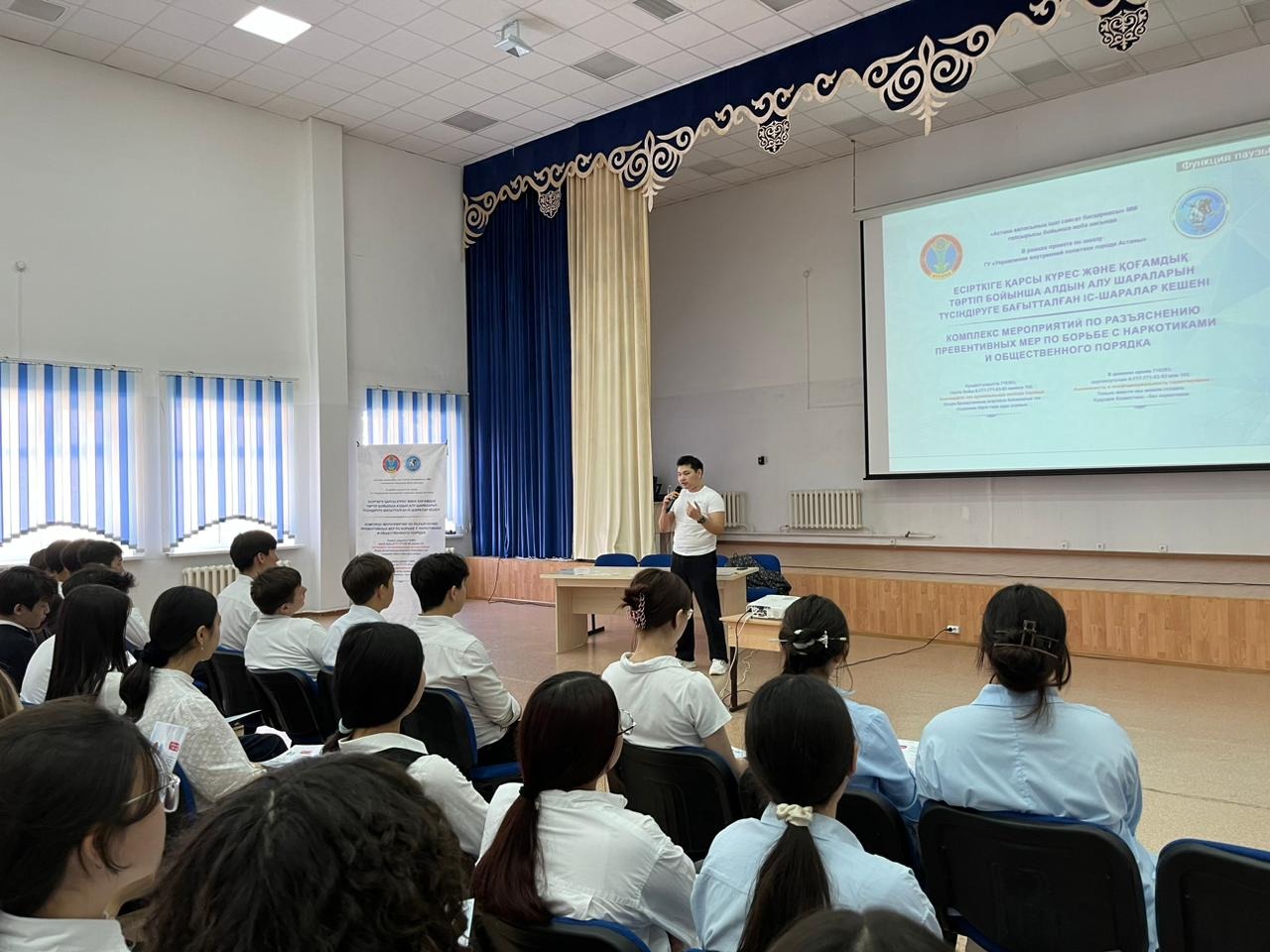 Мектеп оқушылары белсенді түрде талқылауға қатысып, сұрақтар қойып, пікірлерін білдірді. Сондай-ақ қатысушыларға есірткінің зияны туралы маңызды ақпарат қамтылған ақпараттық парақшалар таратылды.