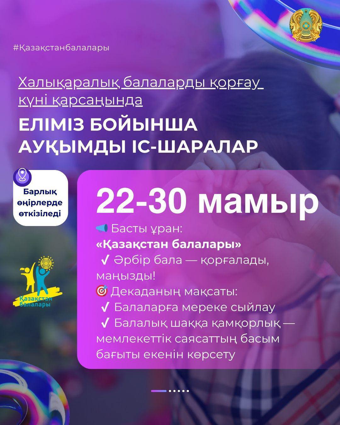 Еліміздің барлық өңірінде Халықаралық балаларды қорғау күніне арналған ауқымды іс-шаралар өтеді