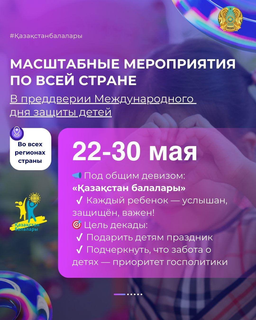 22–30 мамыр аралығында еліміздің барлық өңірінде Халықаралық балаларды қорғау күніне арналған кең ауқымды іс-шаралар басталады, деп хабарлайды ҚР Оқу-ағарту министрлігінің баспасөз қызметі.