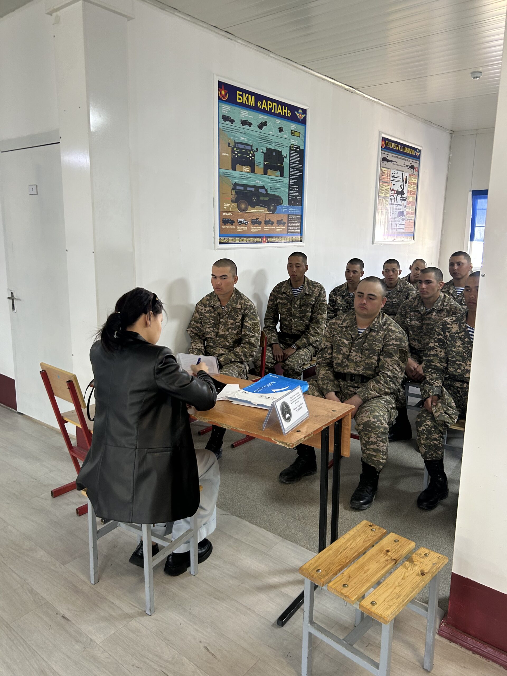 12-16.05.2025 аралығында Жетісу облысы Әділет департаменті мен Жетісу облысы адвокаттар алқасы бірлесіп, мемлекет кепілдік берген тегін заң көмегі бойынша құқықтық консультация беру аясында Талдықорған қаласында орналасқан 18404 әскери бөлімінің сарбаздарымен кездесу өткізді. Кездесу барысында сарбаздар тарапынан қойылған сұрақтарға жауап беріліп, тиісті түсіндіру жұмысы жүргізілді. Аталған іс-шараға 500 әскери борышын өтеуші қатысты.