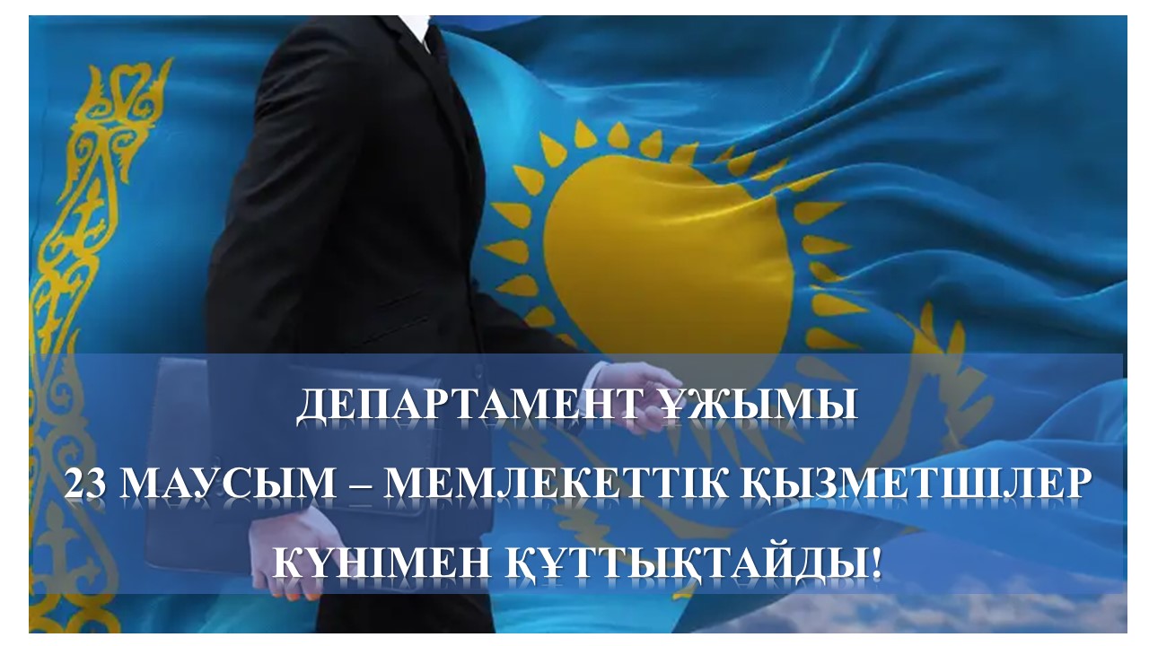 Департамент ұжымы барша мемлекеттік қызметкерлерді атаулы күнмен құттықтай отырып, Сіздерге зор денсаулық, отбасыларыңызға амандық, халыққа қызмет ету жолындағы адал еңбектеріңізге сәттілік тілейді!
