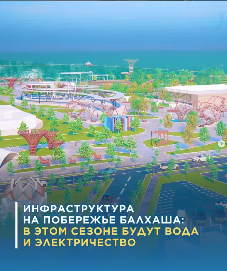 ✅ Балқаш көлі жағалауын дамыту жобасында электрмен және сумен қамту, кәріз жүйелері, жағалау жиегіндегі автожол құрылысының жобасы қарастырылған.