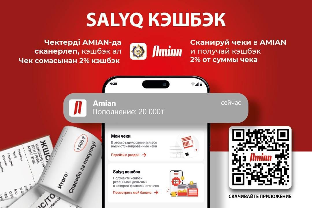 2.Чектегі штрих-кодты «Amian» мобильді қосымшасы арқылы сканерлеп, сатып алу сомасының 2%-ы мөлшерінде кэшбэк алу қажет.