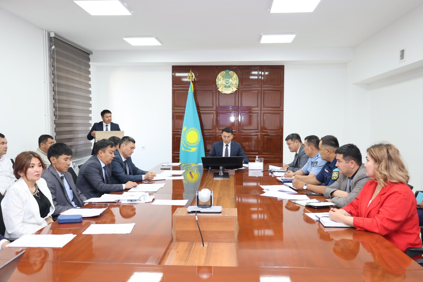 Ішкі саясат бөлімінің басшысы Нұрғазы Тәжібеков қоғамдық даму саласындағы іс-шараларды қаржыландыру кезінде кездесуі мүмкін сыбайлас жемқорлық тәуекелдері туралы баяндама жасады. Ол қаржыландыру процесіне бақылауды жетілдіру, ашықтық механизмдерін қамтамасыз ету бағытында қолға алынған іс-шаралар жайлы айтты.
