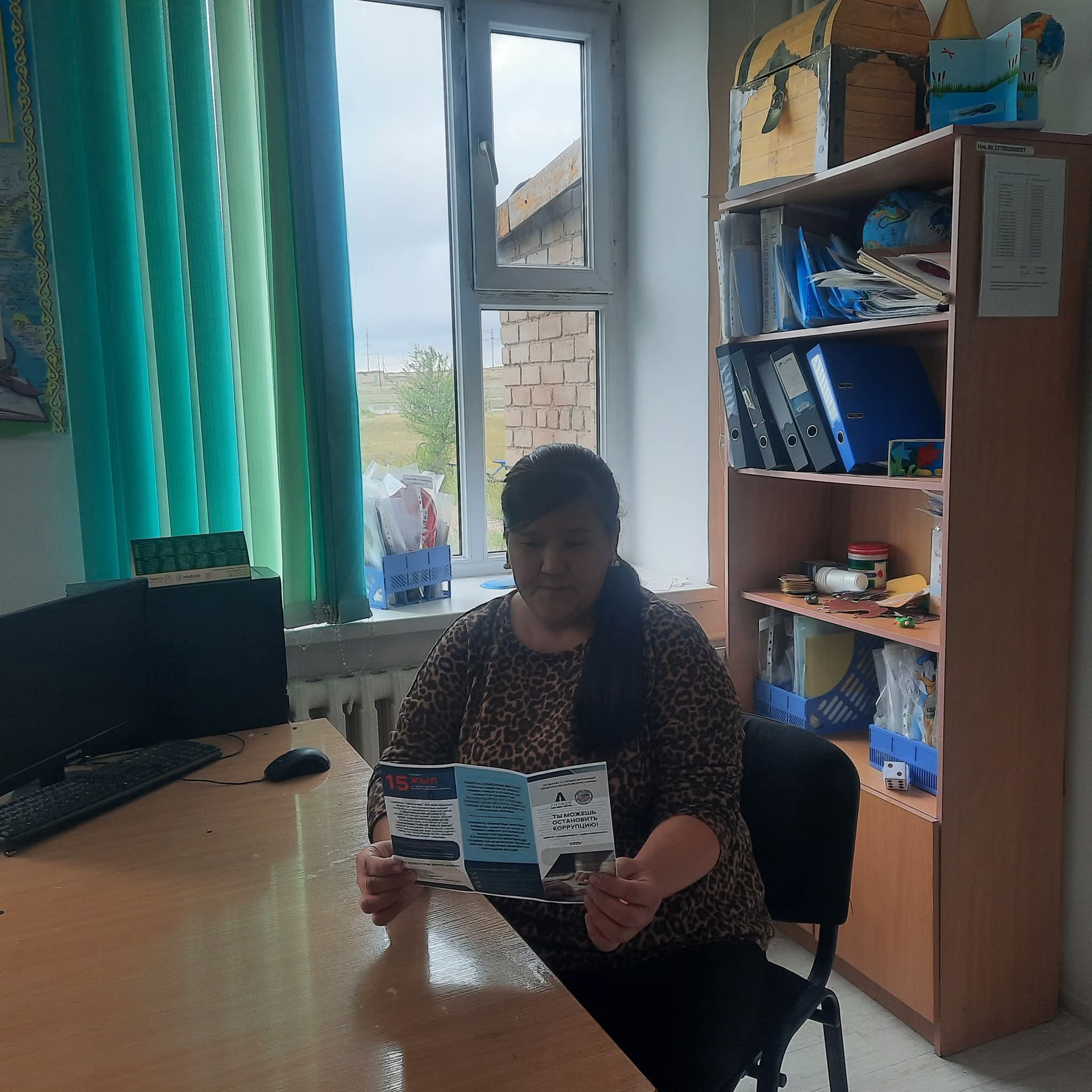 Ағымдағы жылдың 25 маусымында “Ыбырай Алтынсарин атындағы жалпы білім беретін мектеп” КММ педагогтарымен сыбайлас жемқорлықтың алдын-алу бойынша сыбайлас жемқорлыққа қарсы материалдар таратылды.