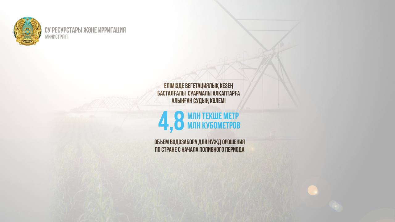 Елімізде вегетациялық кезең басталғалы суармалы алқаптарға алынған судың көлемі