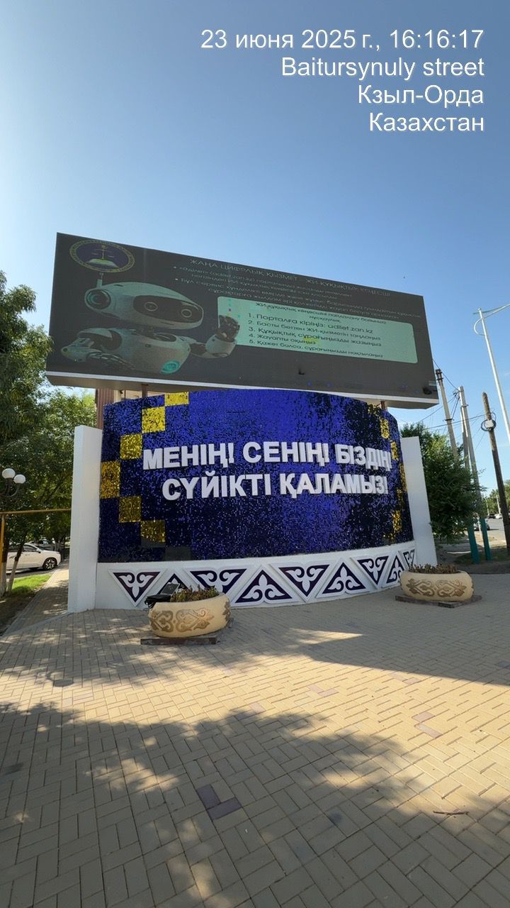 Жаңа цифрлық қызмет – ЖИ-құқықтық кеңесші порталының қызметі жайлы ақпарат Қызылорда қаласы, Ахмет Байтұрсынұлы көшесінің LED тақташасына орнатылды. ЖИ-құқықтық кеңесші жайлы хабарландыру қазақ және орыс тілінде жарияланды.