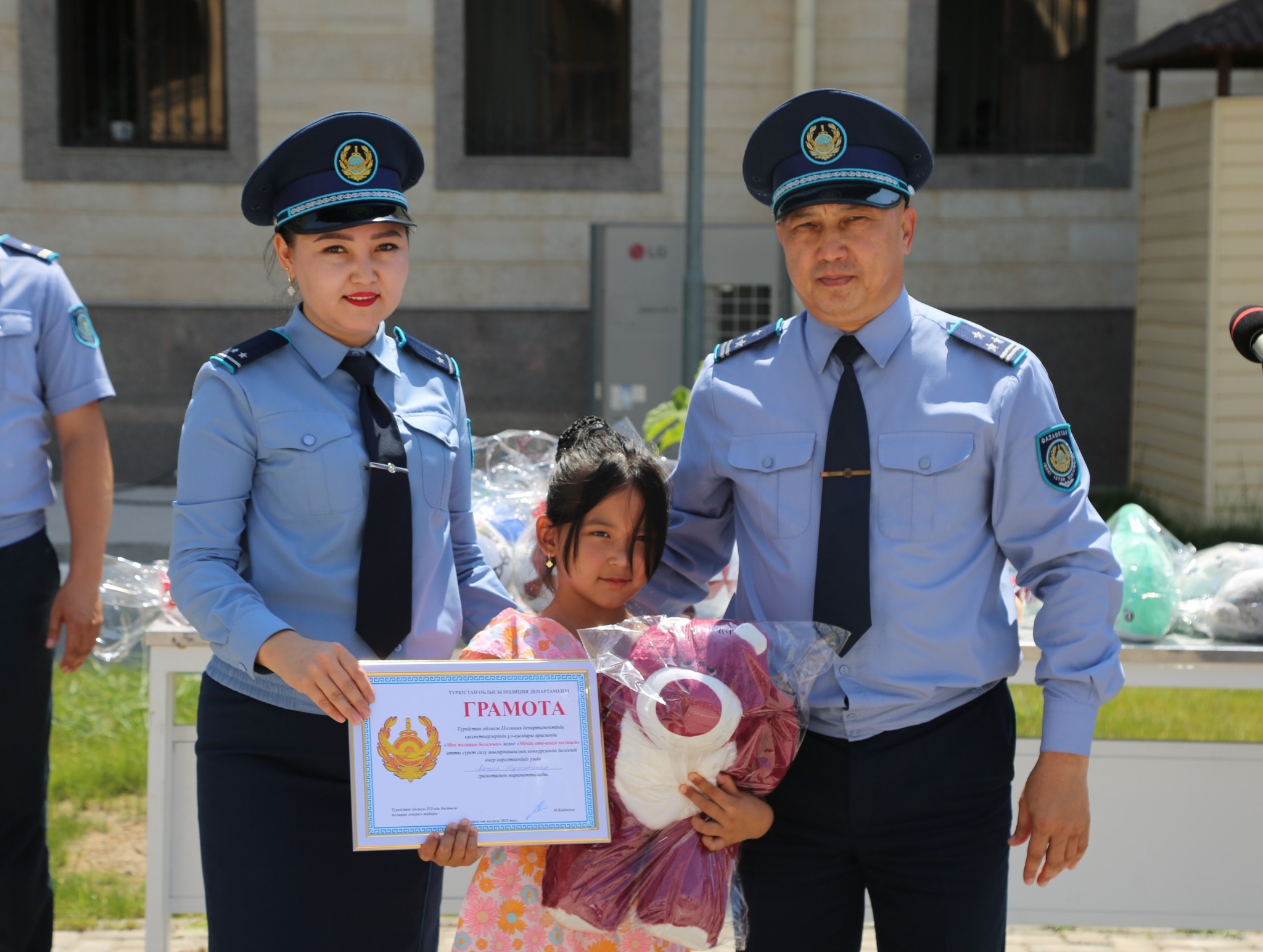 Байқау қорытындысы бойынша Түркістан облысы Полиция департаменті тәрбие және кадр жұмысы басқармасының бастығы полиция полковнигі Мақсат Асқаров жеңімпаздарды құттықтап, департамент бастығының «Грамотасы» мен бағалы сыйлықтарын үлестірді. Барлық қатысушыларға естелік сыйлықтар табысталды. Құтты қонақтарға балмұздақ та таратылып, қуанышқа бөледі.
