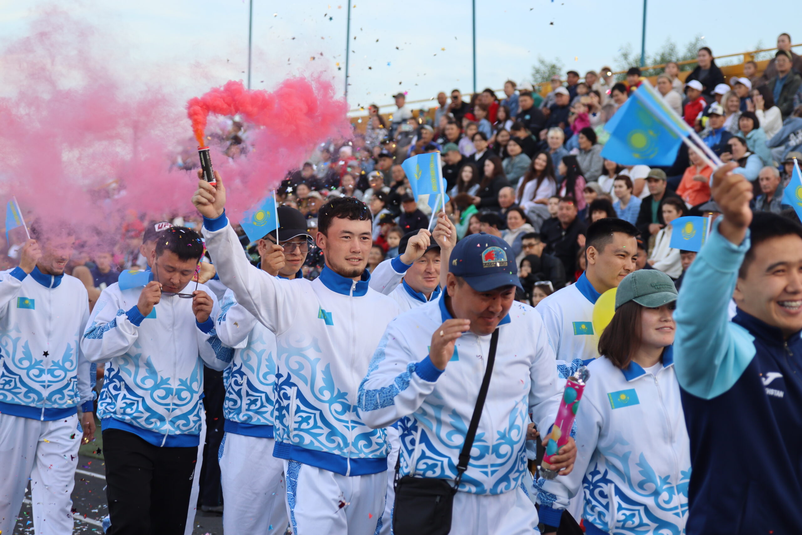 Спартакиаданың туын көтеру құрметі спорт ардагері Бауыржан Құлжановқа тапсырылды. Ал спартакиаданың алауын теңге ілу мен көкпардан спорт шеберлігіне кандидат Исин Мақсат Жомартұлы жақты. Ұлттық спортқа бала кезінен қызығушылық танытып, өзі де жоғары жетістіктерге жетіп қана қоймай, көптеген жас спортшыларды тәрбиелеп шығарған ол бүгінде аудан намысын қорғап жүрген дарынды шәкірттерінің мақтанышы.