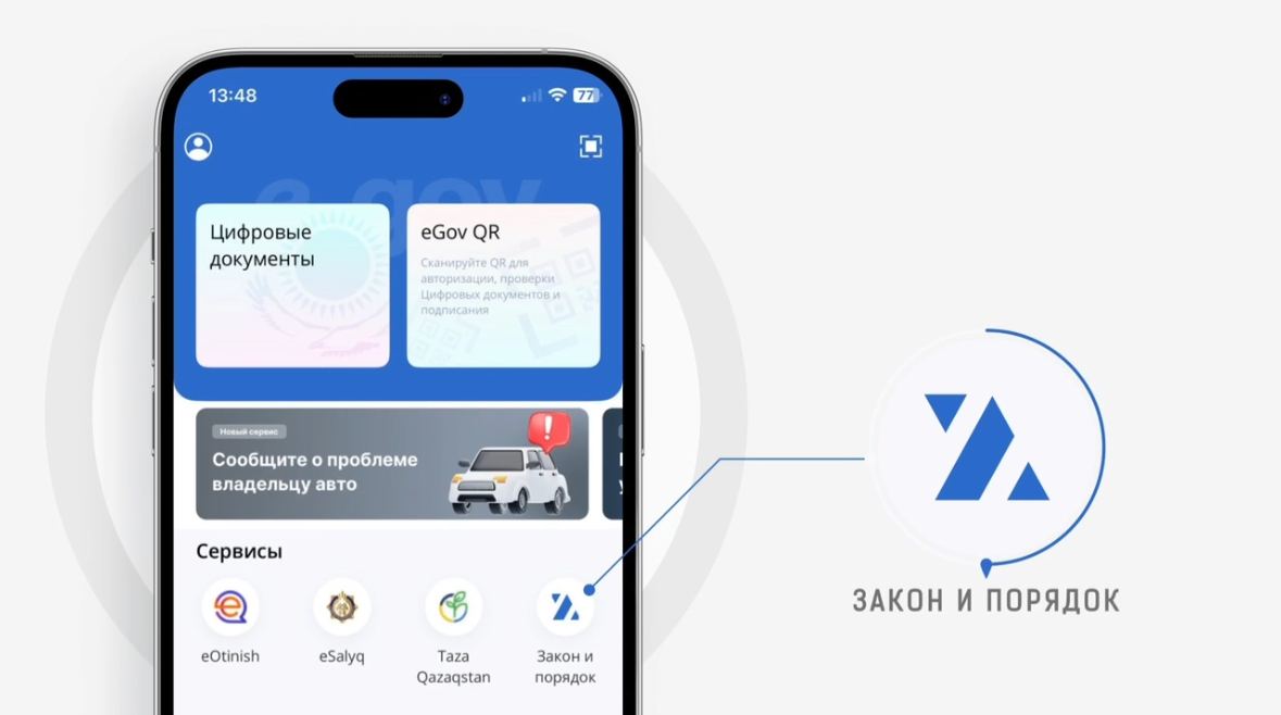 Egov Mobile мобильді қосымшасында жаңа функция — «Заң және Қоғамдық тәртіп» бөлімі пайда болды. Енді азаматтар полицияға құқықбұзушылықтар туралы жедел түрде хабарлай алады.