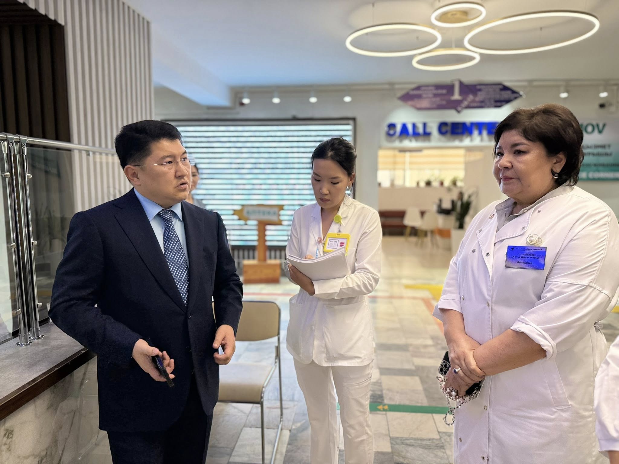 Келесі кезекте ол қоңырауларға жауап беретін байланыс орталығының жұмысын көріп, халықпен кері байланыстың қаншалықты сапалы ұйымдастырылғанына назар аударды. Бұл бағытта өз тарапынан бірнеше ұсыныстар айтқан басқарма басшысы тіркеу бөлімінің қызметі мен ондағы жүктемені, дәрігерге дейінгі алғашқы көмектің қалай ұйымдастырылғанын бақылап, мамандарды оқыту және бағыттау жұмыстарын сұрап білді.