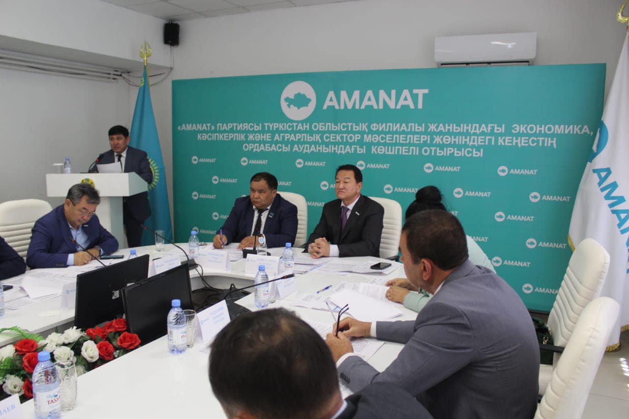 «AMANAT» партиясы Түркістан облыстық филиалы жанындағы Экономика, кәсіпкерлік және аграрлық сектор мәселелері жөніндегі кеңестің көшпелі отырысы Ордабасы ауданында өтті.