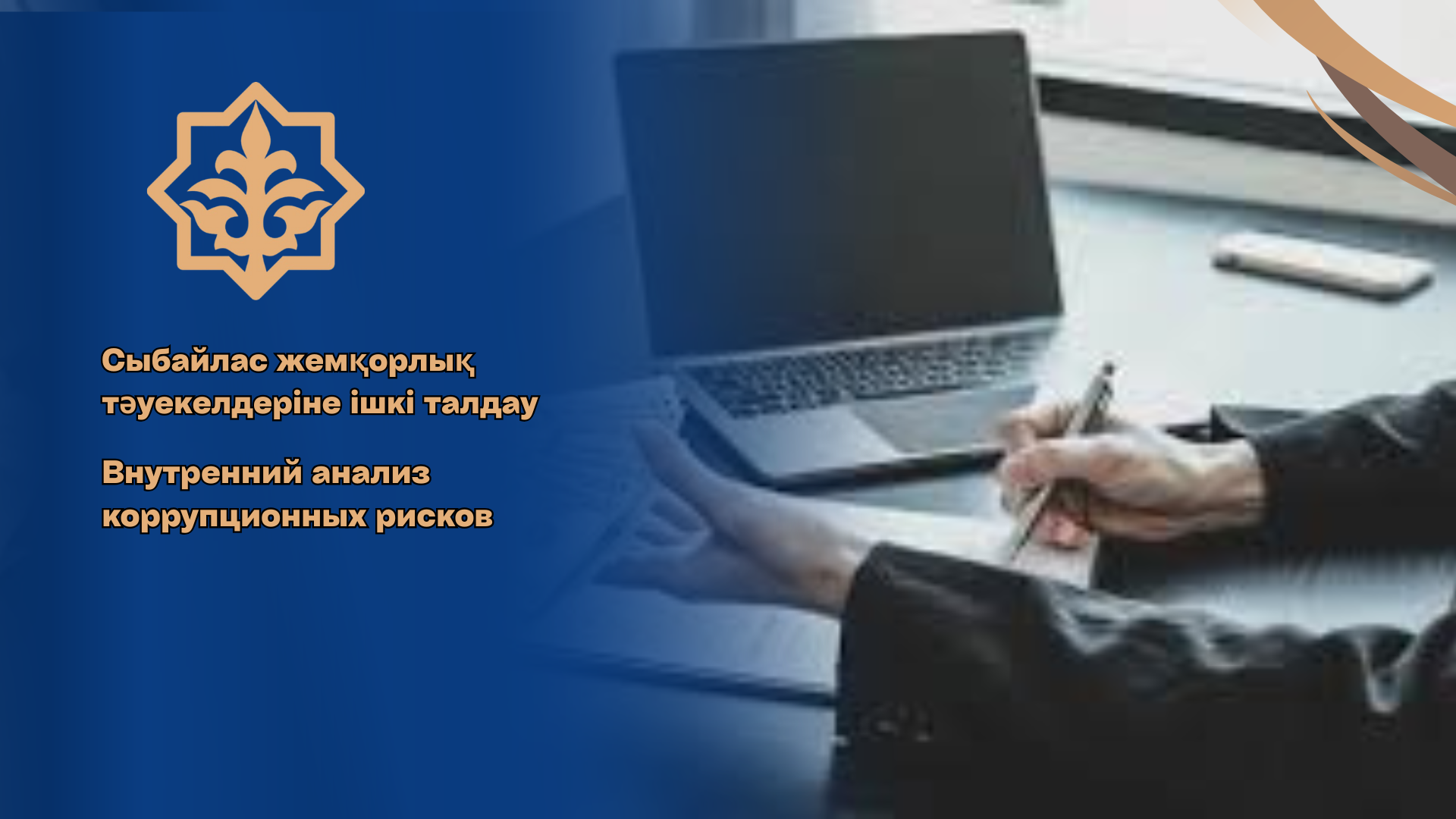 Қазақстан Республикасы Қаржы министрлігі Мемлекеттік мүлік және жекешелендіру комитетінің Батыс Қазақстан мемлекеттік мүлік және жекешелендіру департаменті» ММ-cі Қазақстан Республикасының «Сыбайлас жемқорлыққа қарсы іс-қимыл туралы» 2015 жылғы 18 қарашадағы №410 Заңының 8-бабының 5-тармағына және Қазақстан Республикасы Мемлекеттік қызмет істері және сыбайлас жемқорлыққа қарсы іс-қимыл агенттігі төрағасының «Сыбайлас жемқорлық тәуекелдеріне ішкі талдау жүргізудің үлгілік қағидаларын бекіту туралы» 2016 жылғы 19 қазандағы №12 бұйрығына және Қазақстан Республикасы Қаржы министрлігі Мемлекеттік мүлік және жекешелендіру комитетінің 2024 жылғы 11 сәуірдегі №Л-69 бұйрығына сәйкес 2025 жылғы 10 шілдеден бастап 18 шілде аралығында 2025 жылдың бірінші жартыжылдығы бойынша Департамент қызметінің сыбайлас жемқорлық тәуекелдеріне ішкі талдау жүргізуді жоспарлауда.