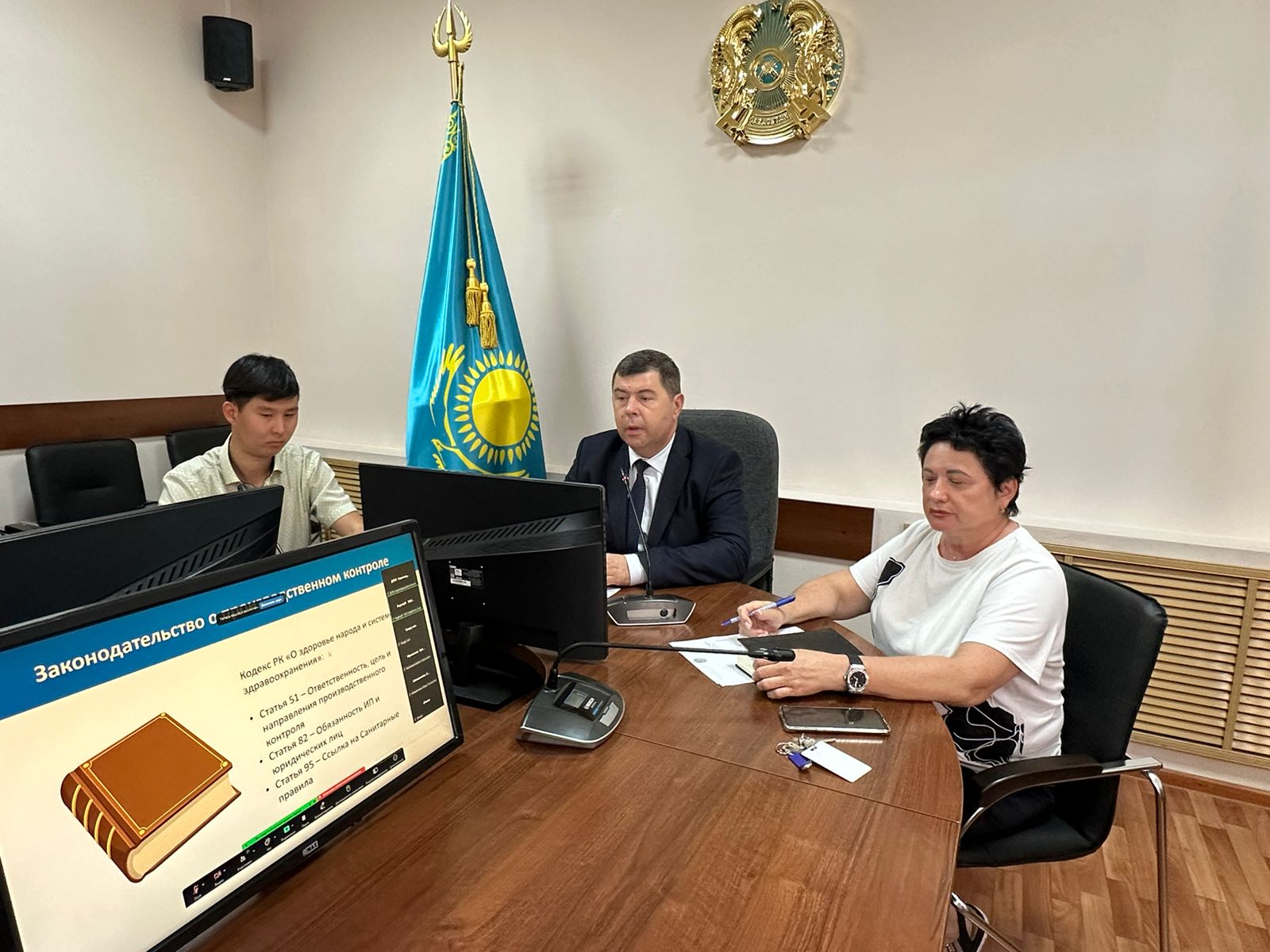 Жиын барысында қатысушыларға ҚР Денсаулық сақтау министрінің 2023 жылғы 7 сәуірдегі №62 бұйрығымен бекітілген «Өндірістік бақылауды жүзеге асыруға қойылатын санитариялық-эпидемиологиялық талаптар» санитариялық қағидаларының негізгі ережелері түсіндіріліп, өндірістік бақылау бағдарламасын әзірлеу тәртібі, зертханалық зерттеулер жүргізу және есептілік мерзімдері бойынша түсіндіру жұмыстары жүргізілді.