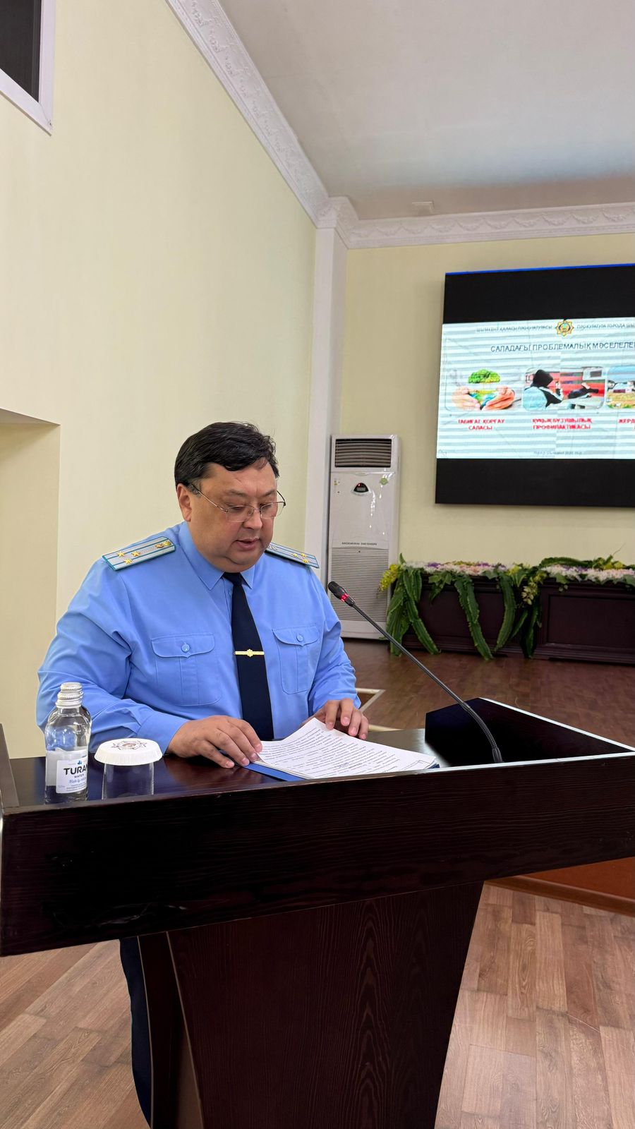 Қала прокурорының орынбасары Сламбеков Марлен өз баяндамасында әлеуметтік-экономикалық саладағы маңызды жетістіктерді атап өтті.