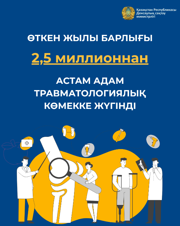 2024 жылы 2,5 миллионнан астам адам травматологиялық көмекке жүгінді. Травматология және ортопедия бейіні бойынша стационарларда 240 мың пациент емделді, 130 мыңнан астам, оның ішінде 1 556 — жоғары технологиялық операция жүргізілді.