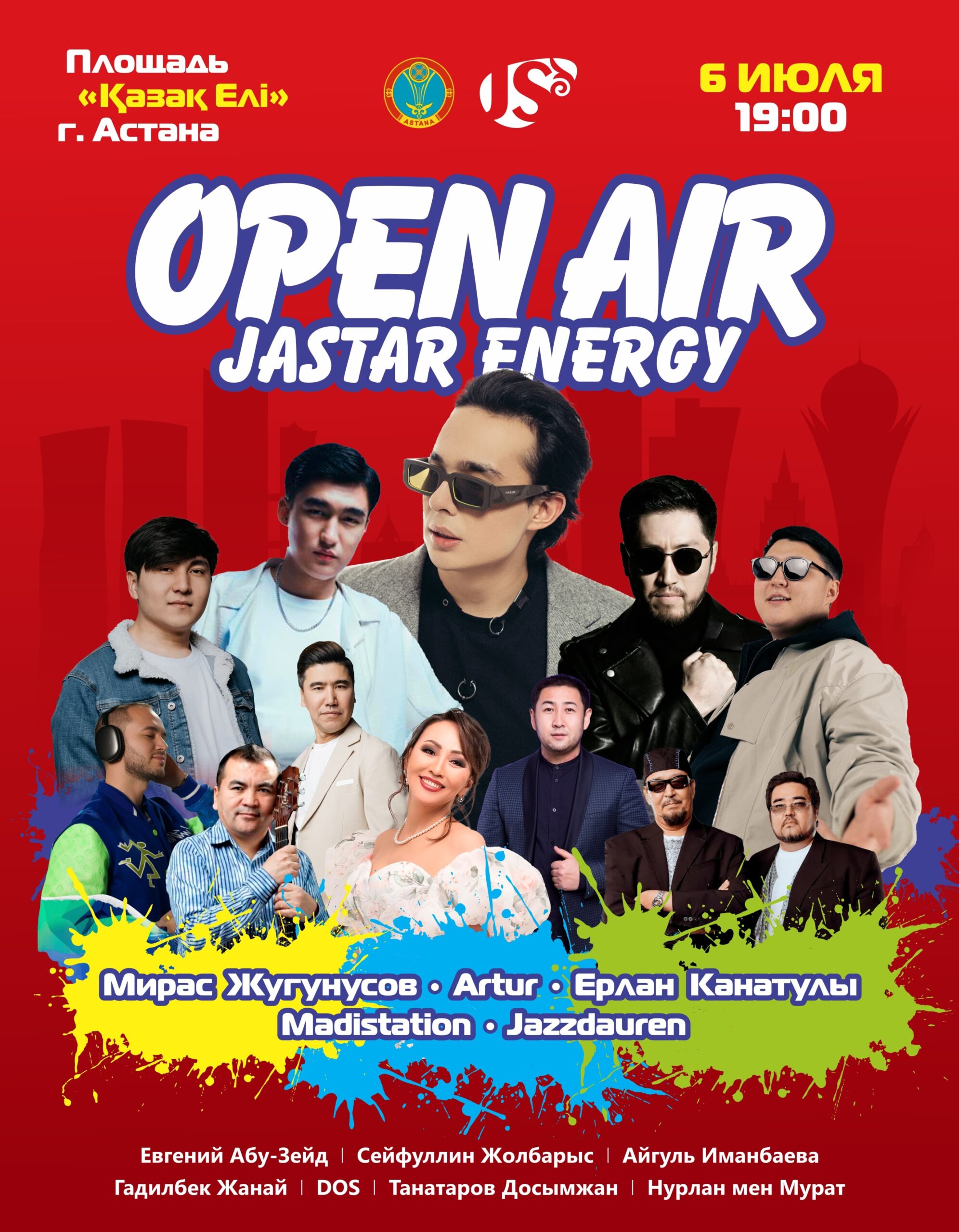 Астанадағы «Қазақ елі» монументі алаңында 6 шілде күні «Jastar Energy» атты ашық аспан астындағы жастар концерті өтеді, деп хабарлайды елорда әкімдігінің ресми сайты.