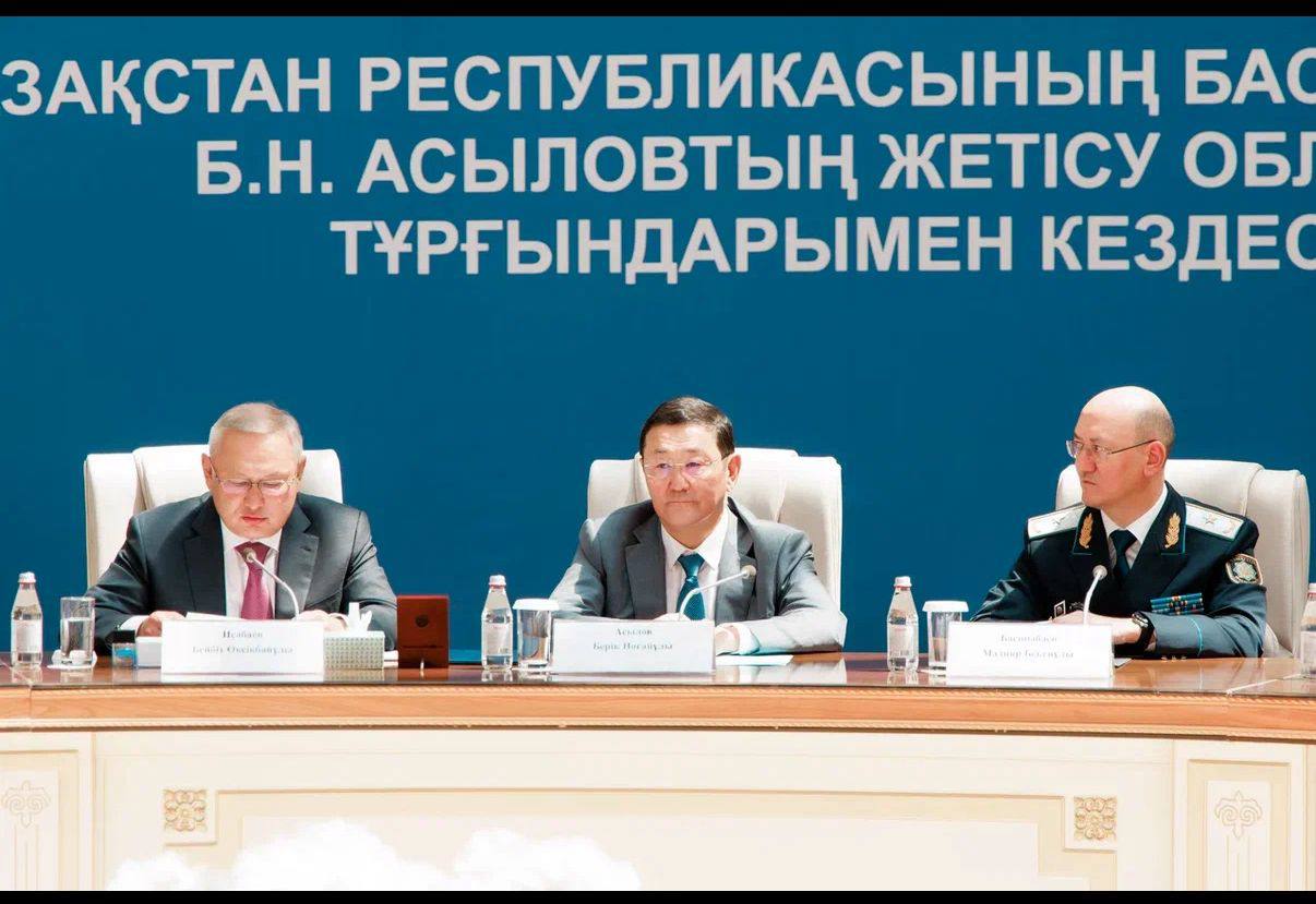 Б.Асылов Жетісуда заңсыз алынған активтерді қайтару бойынша Бас прокуратураның жұмысы аясында мемлекетке қайтарылған қаражатқа маңызды әлеуметтік жобалар жүзеге асырылып жатқанын атап өтті — ауылдық жерлерде 22 нысан, оның ішінде мектептер, медициналық мекемелер мен сумен жабдықтау жүйелері салынуда.