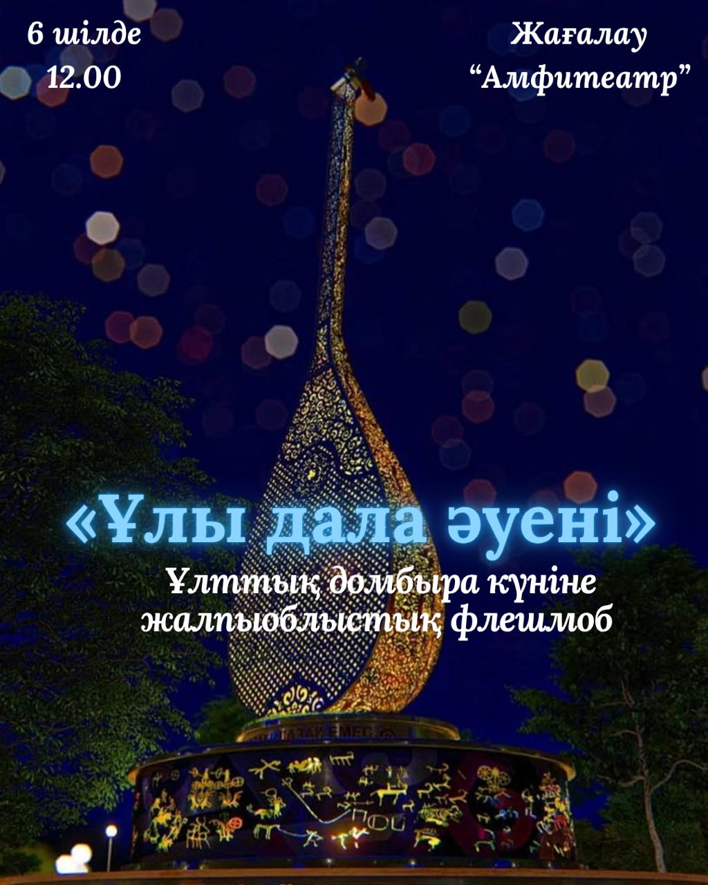6 шілде күні Ақмола облысының орталығында Ұлттық Домбыра күніне арналған кең ауқымды жалпыоблыстық флешмоб өтеді. Бұл игі шараның басты мақсаты – ұлттық мәдени мұраны насихаттау, жас ұрпақ бойында қазақтың киелі аспабы — домбыраға деген құрметті ояту және ұлттық бірегейлікті нығайту.