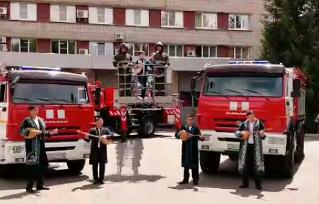 На территории пожарной части областного центра спасатели исполнили кюи “Балбырауын” и “Адай”.